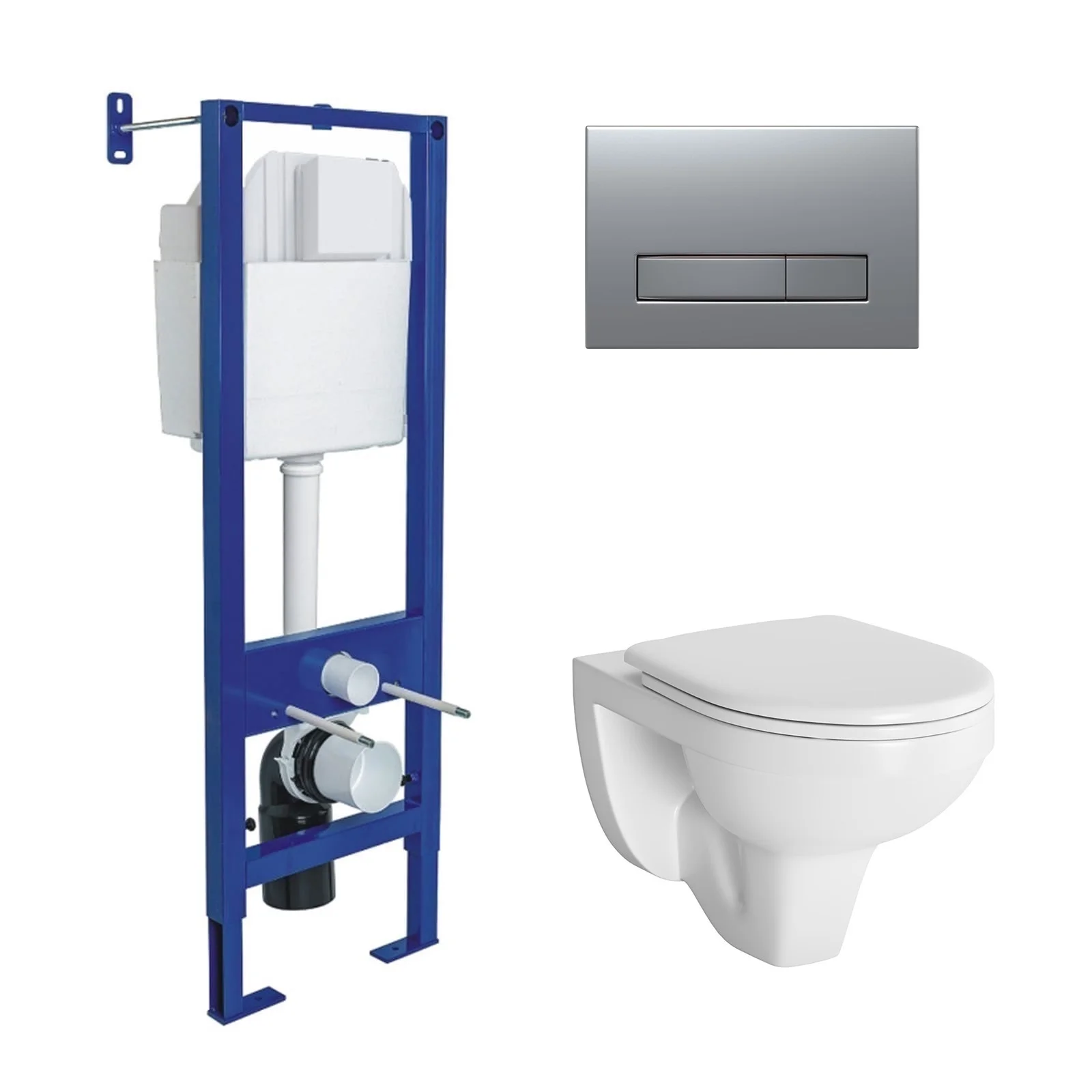 Комплект инсталляции BERGES ATOM 410 с клавишей смыва Atom Line матовый хром, унитазом Gamma и сиденьем, микролифт, быстросъем 043342
