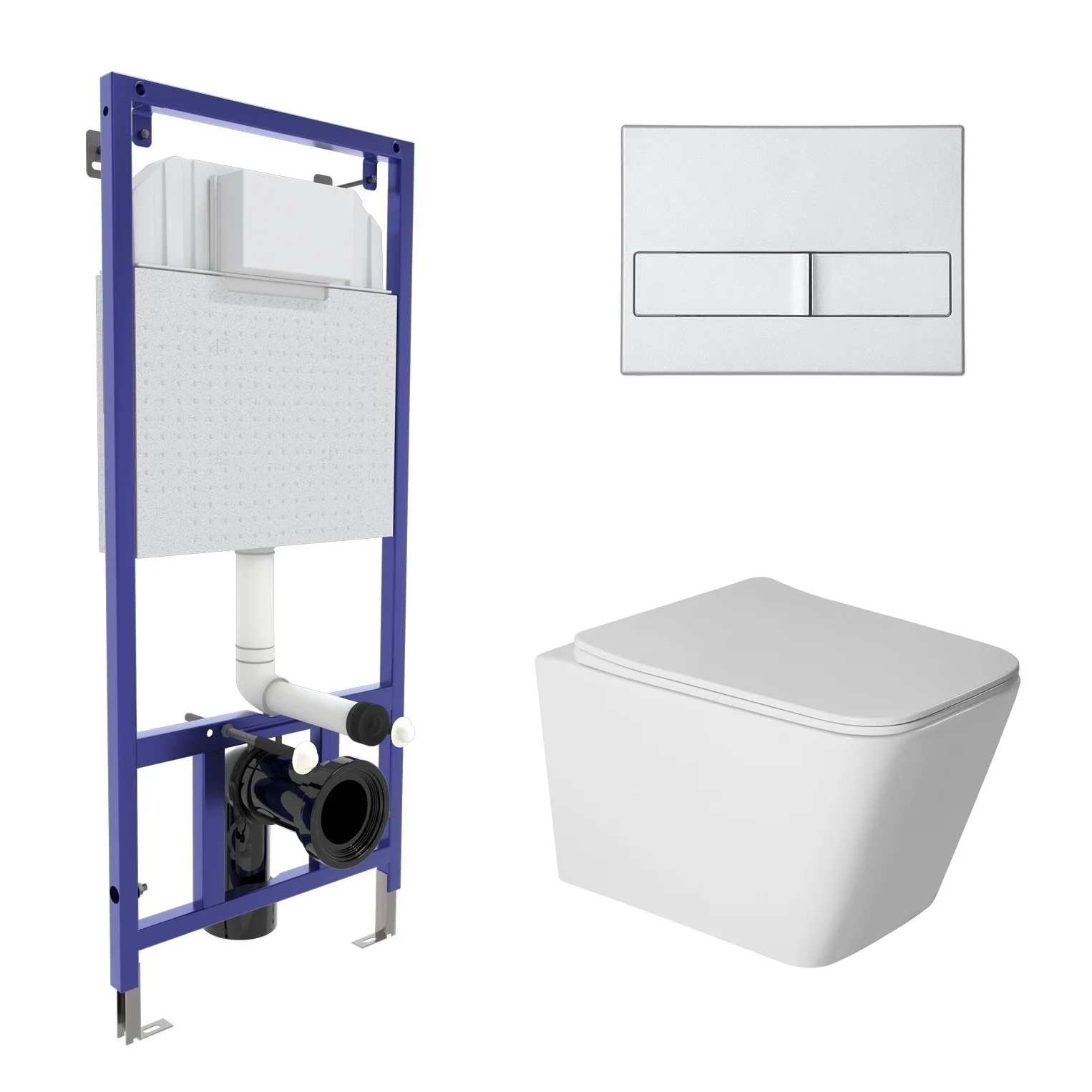 Комплект инсталляции BERGES NOVUM с клавишей смыва L2 матовый хром, унитазом SIGMA Rimless 52 см и сиденьем микролифт, быстросъём 043398