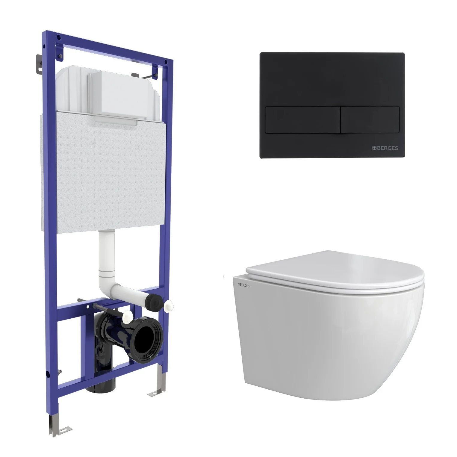 Комплект инсталляции BERGES NOVUM с клавишей смыва L5 Soft Touch черная, унитазом OKUS Rimless 49 см и сиденьем микролифт, быстросъём 043387