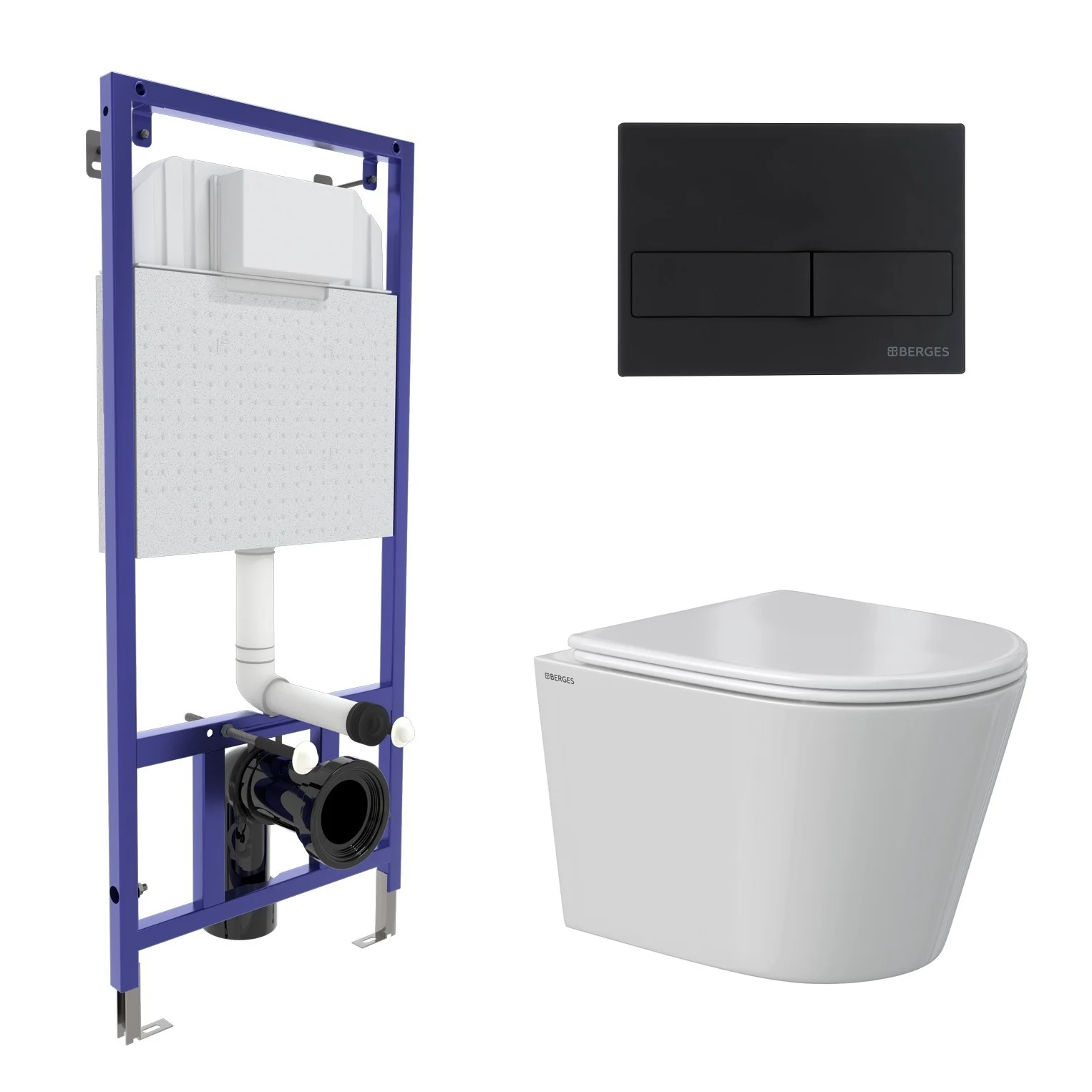 Комплект инсталляции BERGES NOVUM с клавишей смыва L5 Soft Touch черная, унитазом VITA Rimless 49 см и сиденьем микролифт, быстросъём 043372