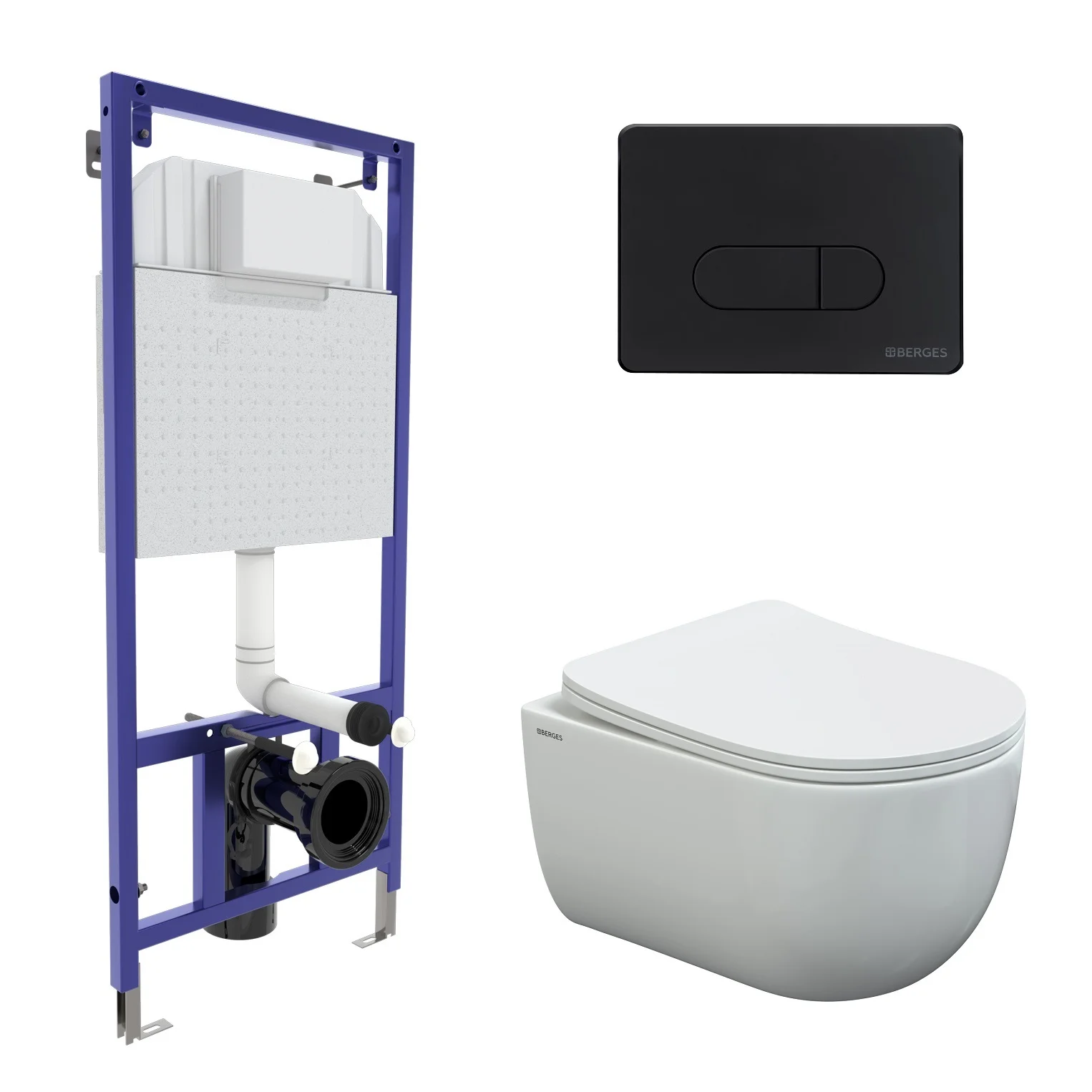 Комплект инсталляции BERGES NOVUM525, с клавишей смыва D5 черная Soft Touch, унитазом VENTAS Rimless и сиденьем Ventas Slim SO, микролифт, быстросъем 043238