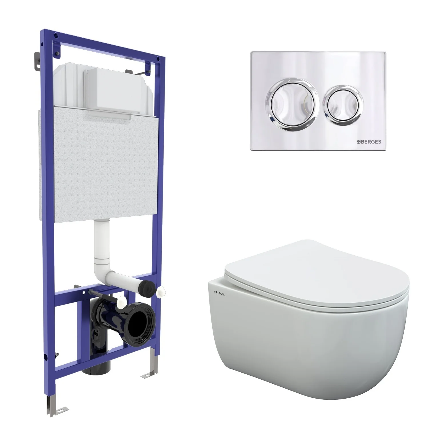 Комплект инсталляции BERGES NOVUM525, с клавишей смыва О3 хром глянец, унитазом VENTAS Rimless и сиденьем Ventas Slim SO, микролифт, быстросъем 043241