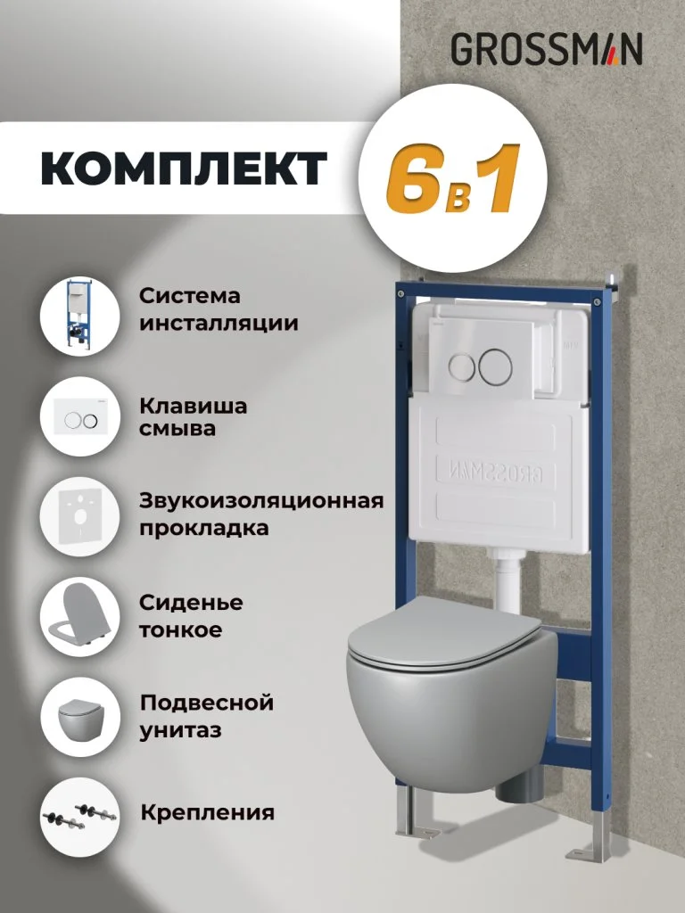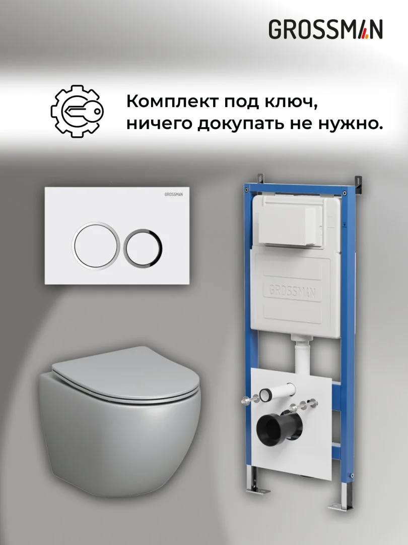 Комплект инсталляции GROSSMAN 900.K31.01.000 с клавишей смыва 700.K31.01.000.000 белый и унитазом GROSSMAN GR-4455GLMS арт.97.4455GLMS.01.000