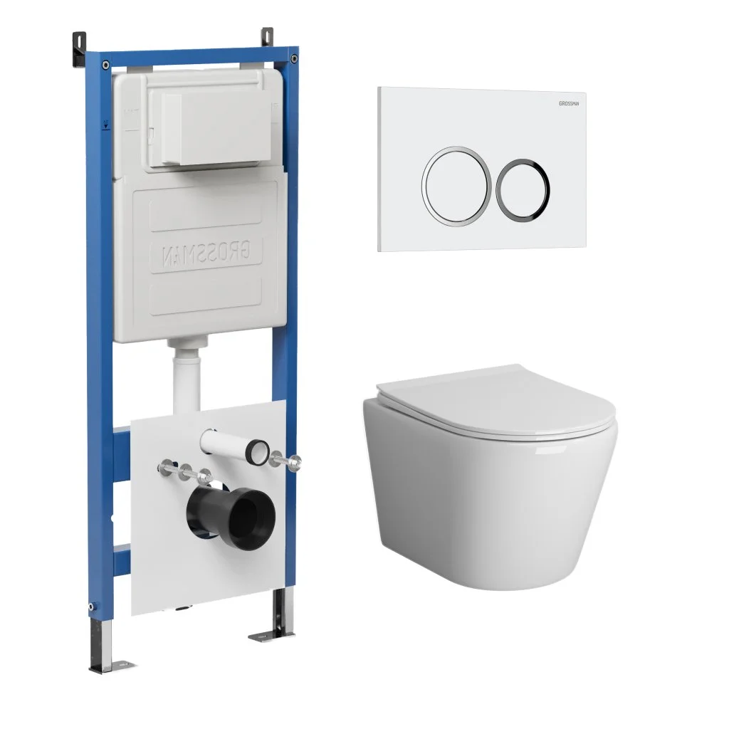 Комплект инсталляции GROSSMAN 900.K31.01.000 с клавишей смыва 700.K31.01.000.000 белый и унитазом GROSSMAN GR-4478S арт.97.4478S.01.000