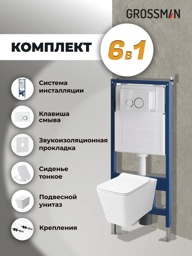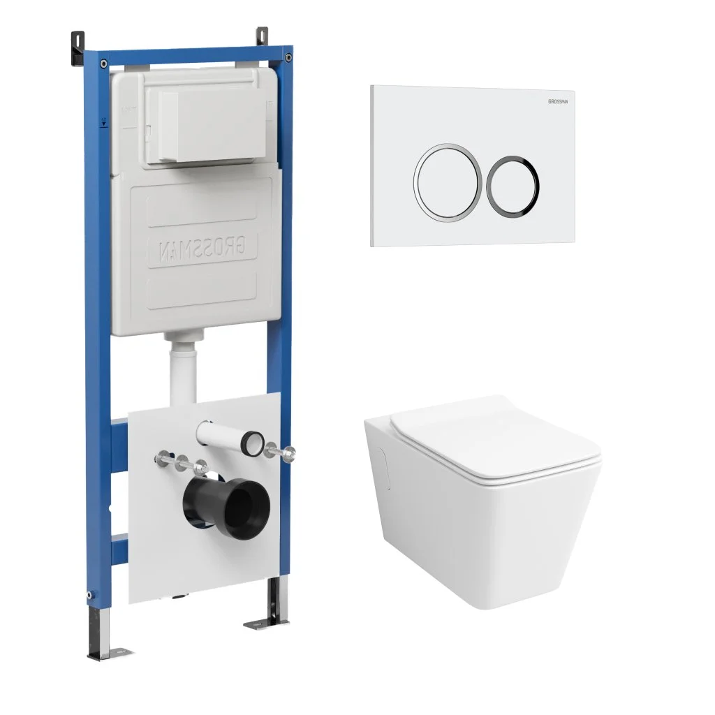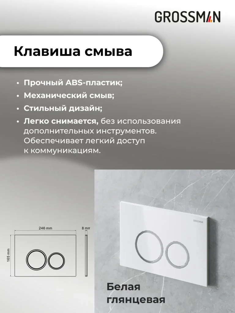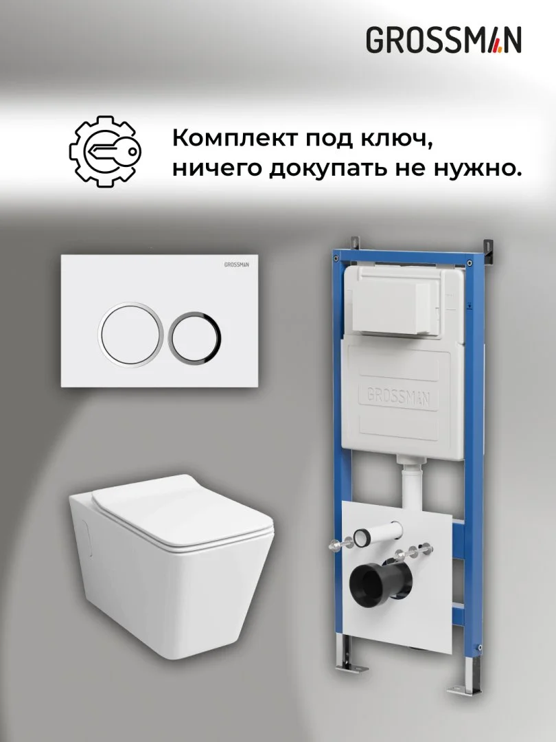 Комплект инсталляции GROSSMAN 900.K31.01.000 с клавишей смыва 700.K31.01.000.000 белый и унитазом GROSSMAN GR-4414S арт.97.4414S.01.000