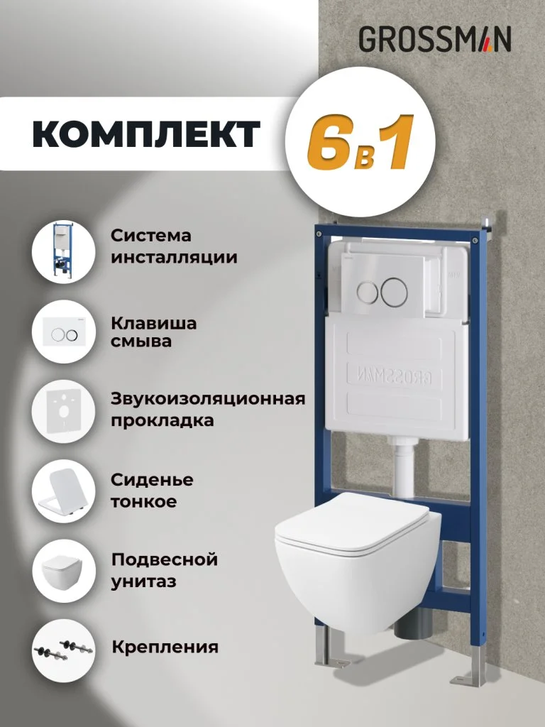 Комплект инсталляции GROSSMAN 900.K31.01.000 с клавишей смыва 700.K31.01.000.000 белый и унитазом GROSSMAN GR-4447S арт.97.4447S.01.000