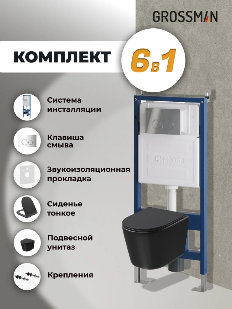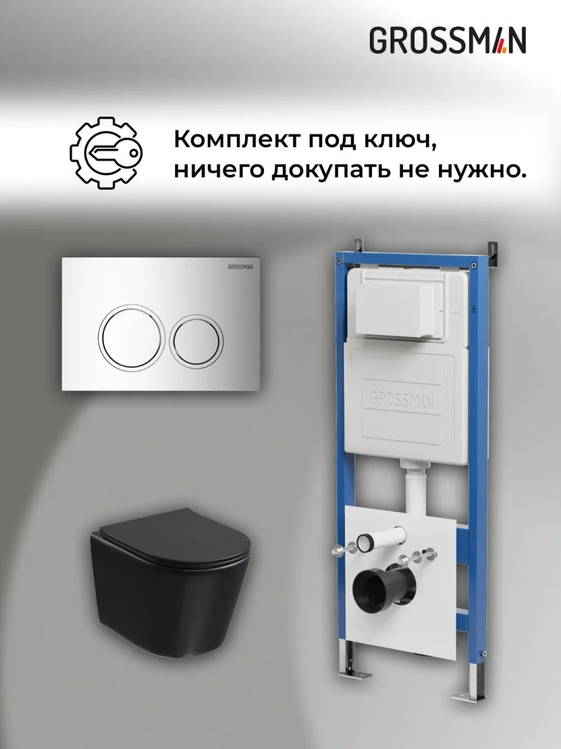 Комплект инсталляции GROSSMAN 900.K31.01.000 с клавишей смыва 700.K31.01.100.100 хром и унитазом GROSSMAN GR-4477BMSQ арт.97.4477BMSQ.01.100