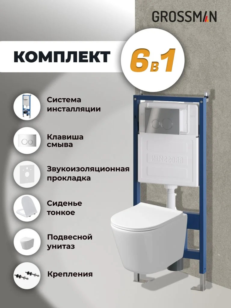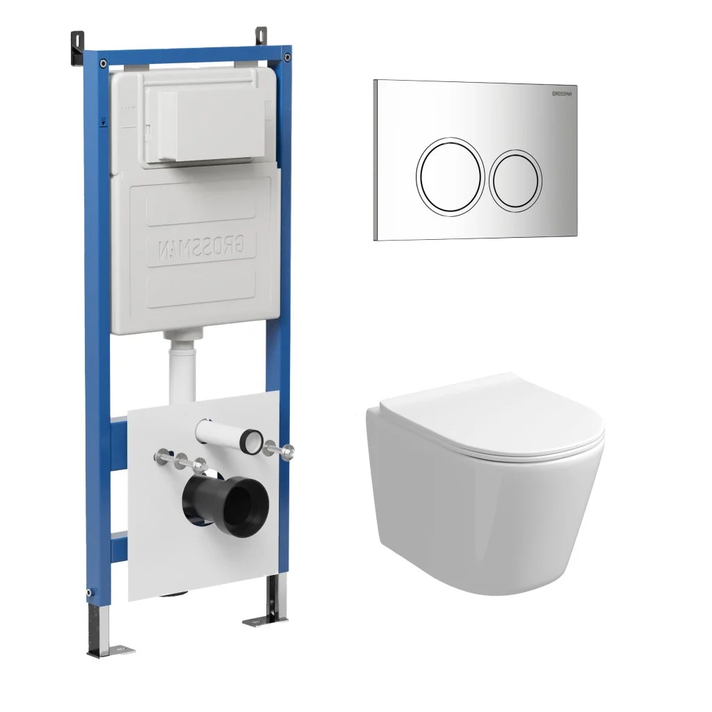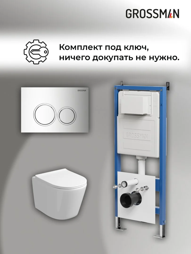 Комплект инсталляции GROSSMAN 900.K31.01.000 с клавишей смыва 700.K31.01.100.100 хром и унитазом GROSSMAN GR-4477SQ арт.97.4477SQ.01.100