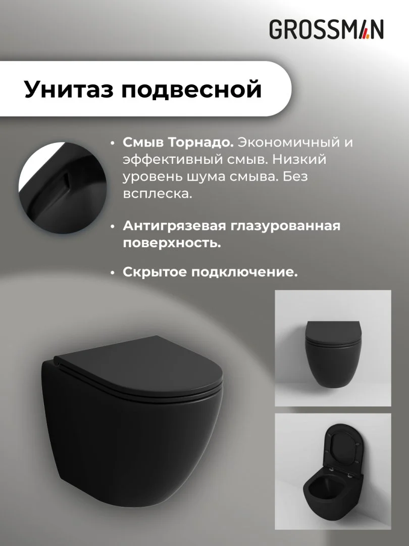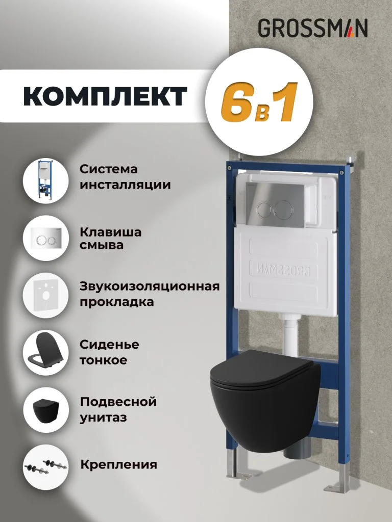 Комплект инсталляции GROSSMAN 900.K31.01.000 с клавишей смыва 700.K31.01.100.100 хром и унитазом GROSSMAN GR-4455BMSQ арт.97.4455BMSQ.01.100