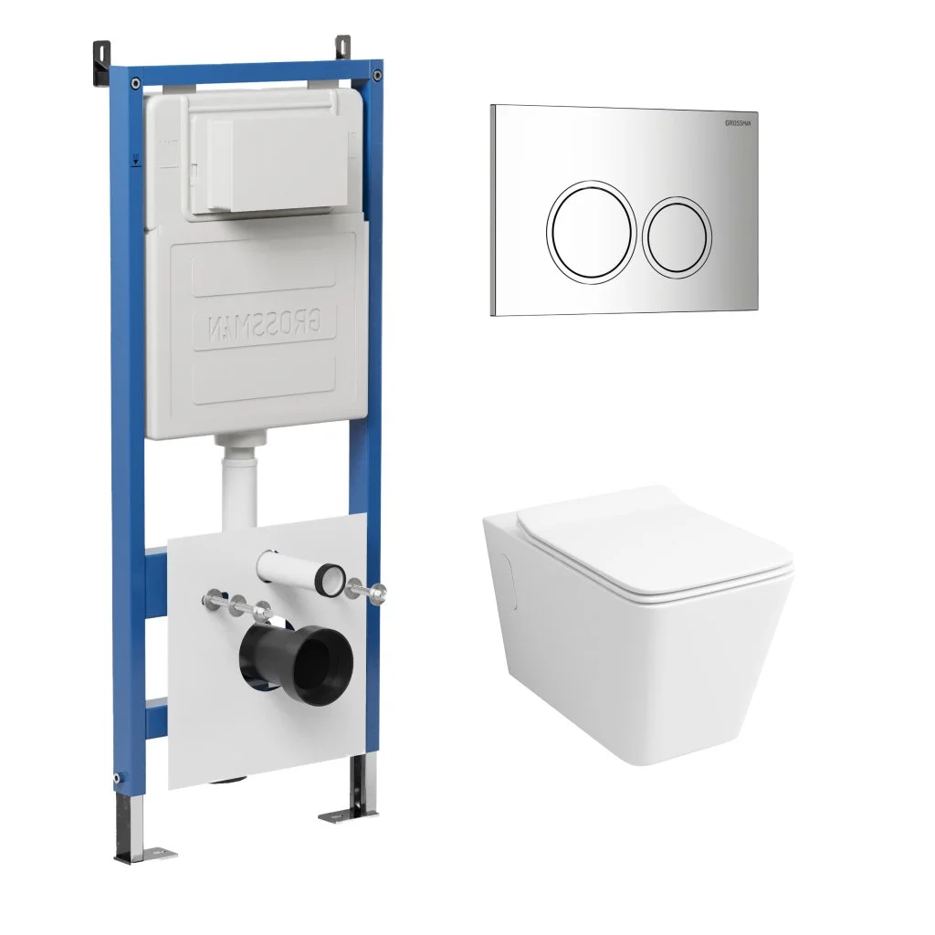 Комплект инсталляции GROSSMAN 900.K31.01.000 с клавишей смыва 700.K31.01.100.100 хром и унитазом GROSSMAN GR-4414S арт.97.4414S.01.100