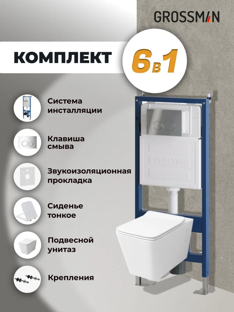 Комплект инсталляции GROSSMAN 900.K31.01.000 с клавишей смыва 700.K31.01.100.100 хром и унитазом GROSSMAN GR-4414S арт.97.4414S.01.100