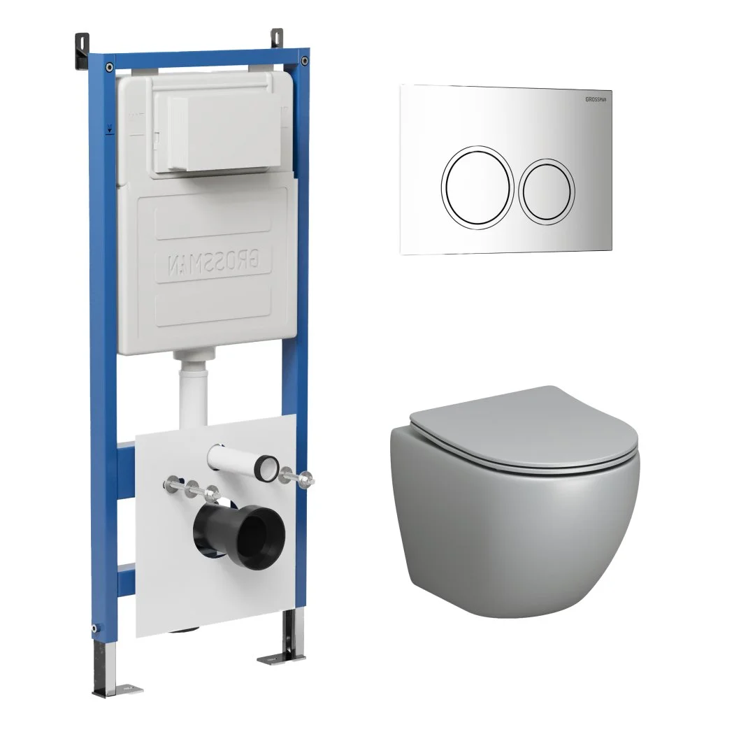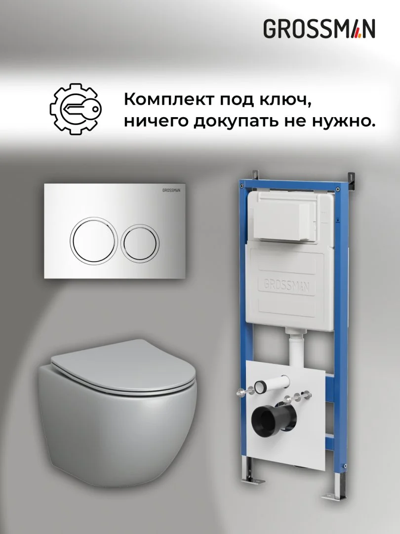 Комплект инсталляции GROSSMAN 900.K31.01.000 с клавишей смыва 700.K31.01.100.100 хром и унитазом GROSSMAN GR-4455GLMS арт.97.4455GLMS.01.100
