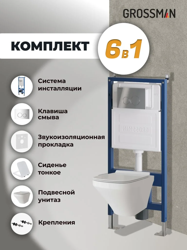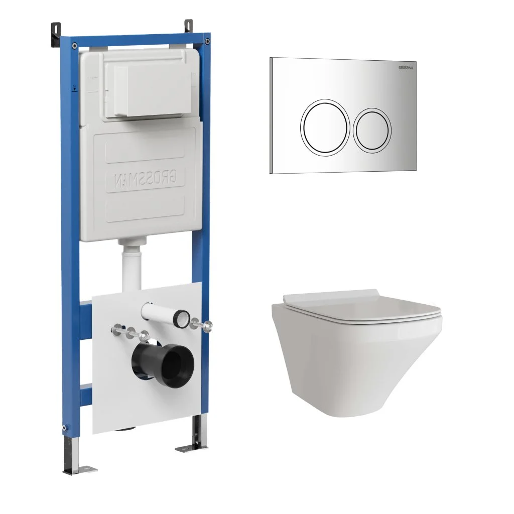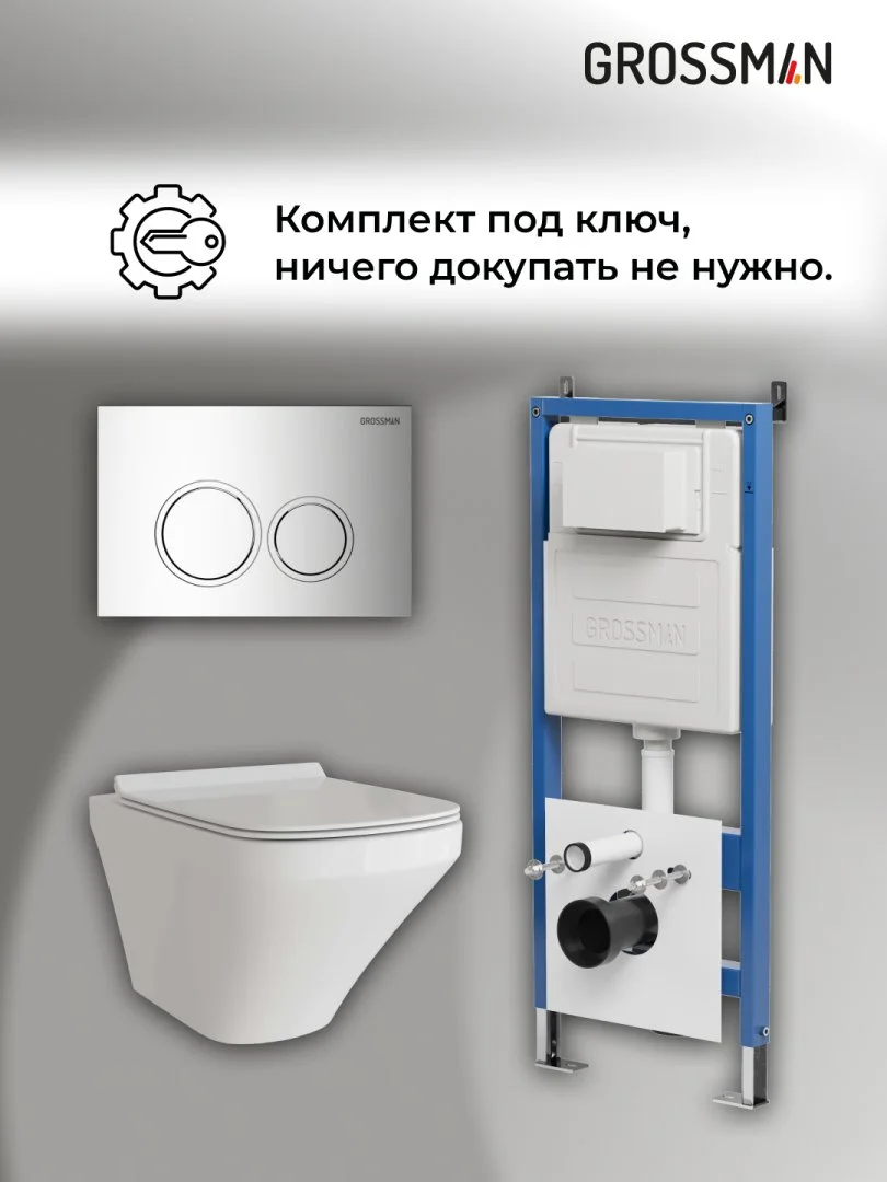 Комплект инсталляции GROSSMAN 900.K31.01.000 с клавишей смыва 700.K31.01.100.100 хром и унитазом GROSSMAN GR-4440S арт.97.4440S.01.100
