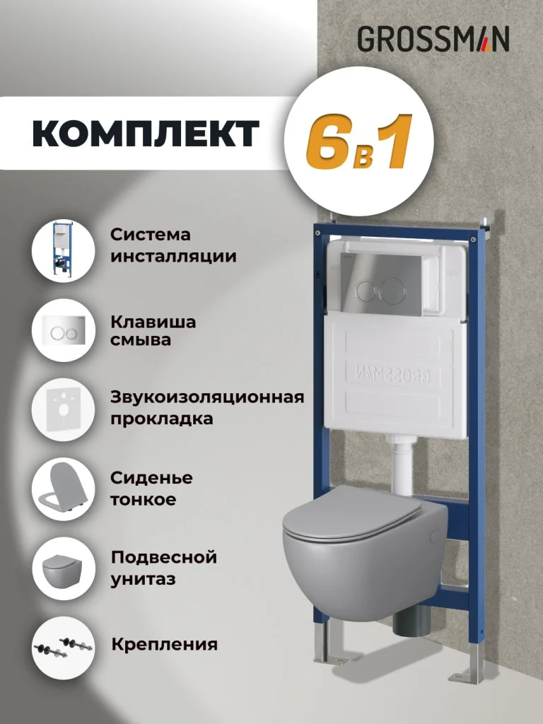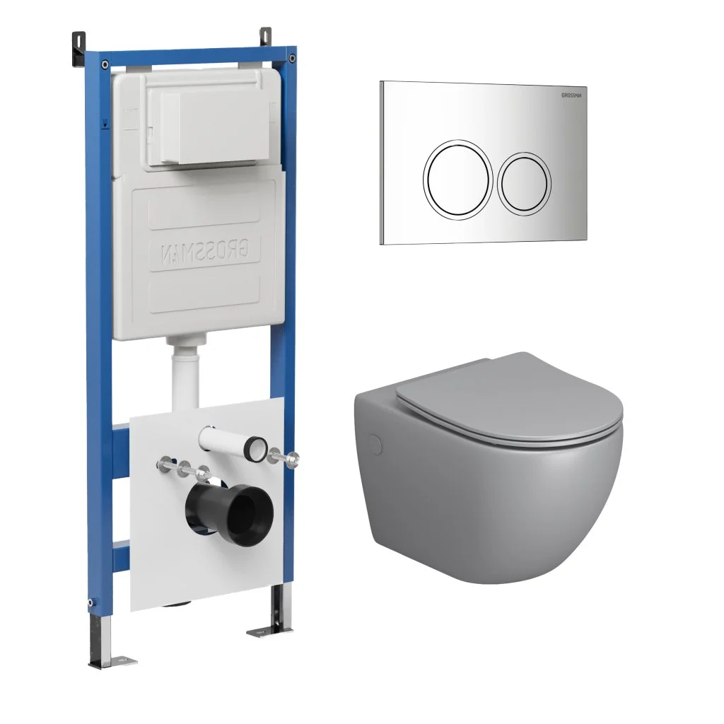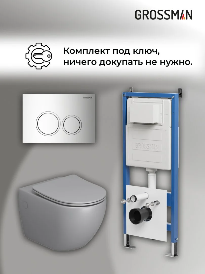 Комплект инсталляции GROSSMAN 900.K31.01.000 с клавишей смыва 700.K31.01.100.100 хром и унитазом GROSSMAN GR-4411BMS арт.97.4411BMS.01.100