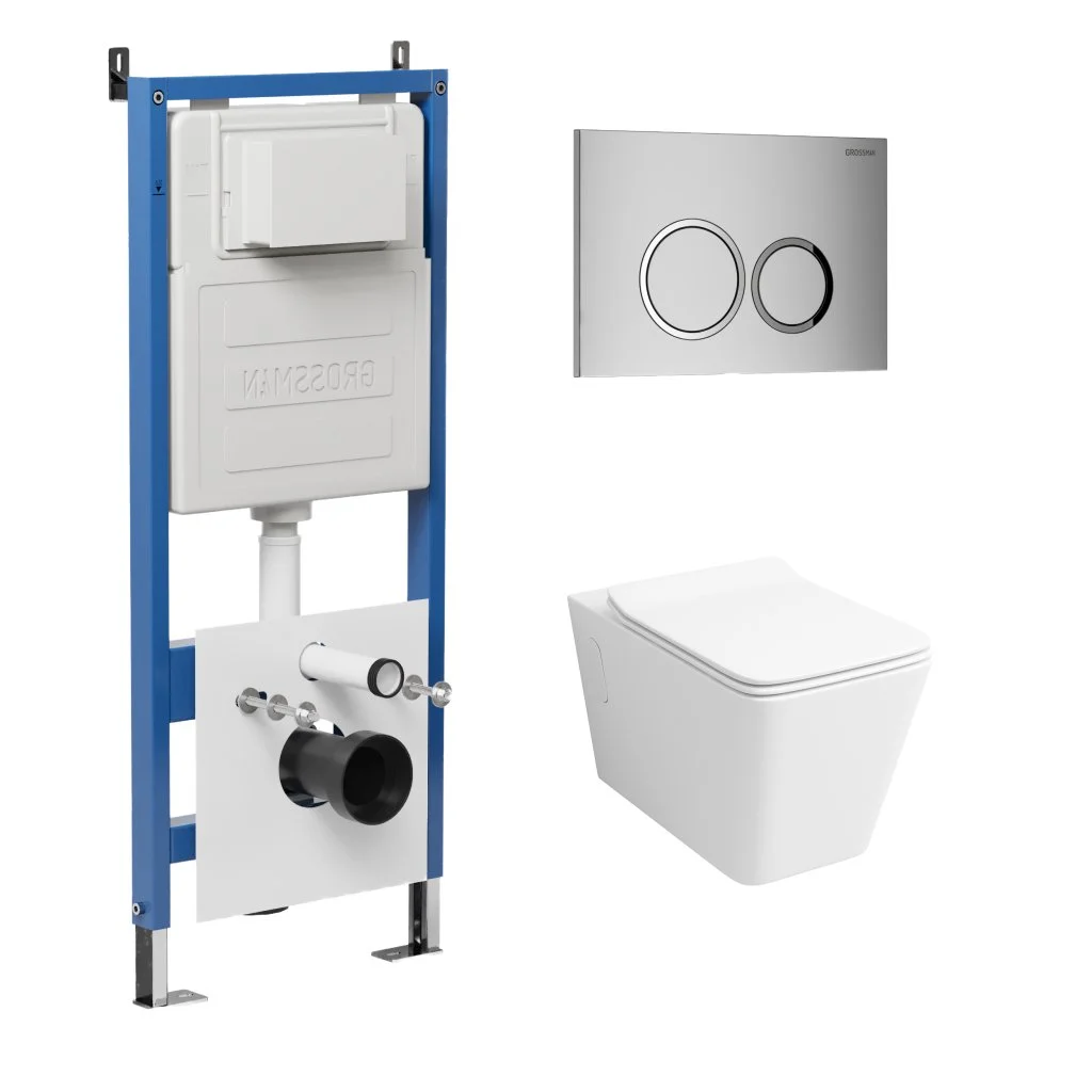 Комплект инсталляции GROSSMAN 900.K31.01.000 с клавишей смыва 700.K31.01.110.110 хром матовый и унитазом GROSSMAN GR-4414S арт.97.4414S.01.110