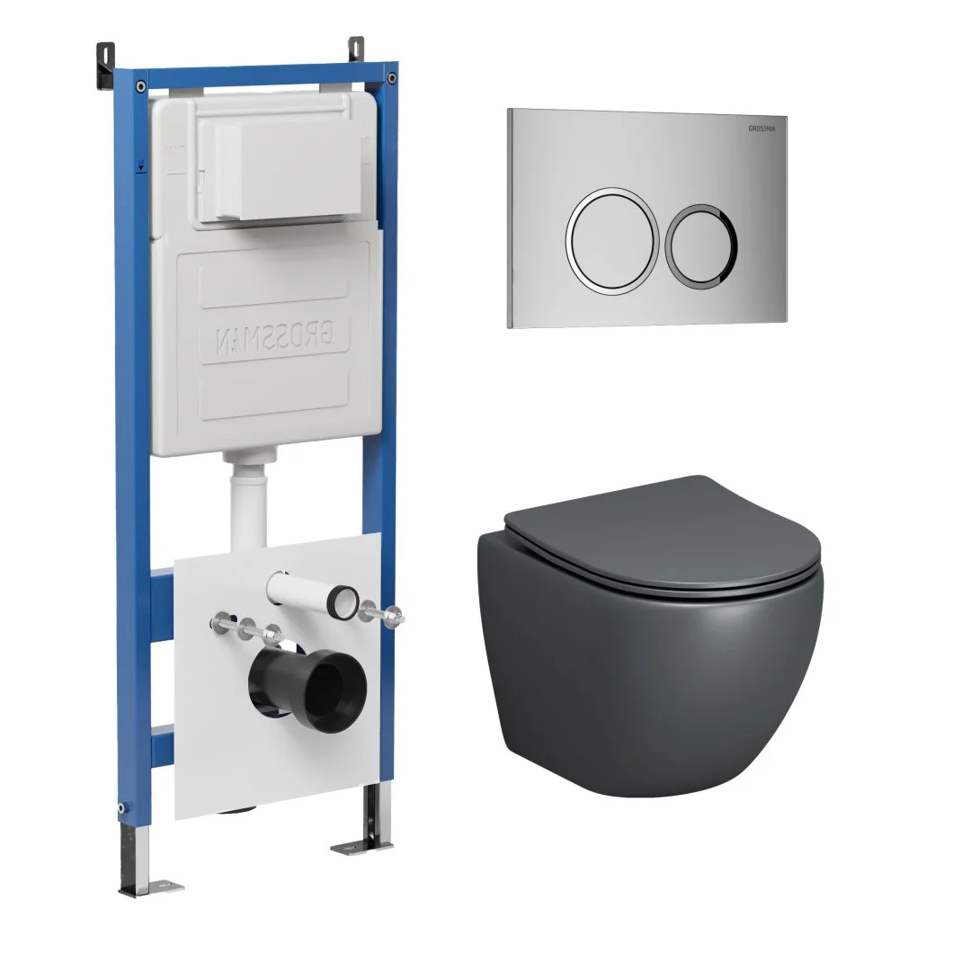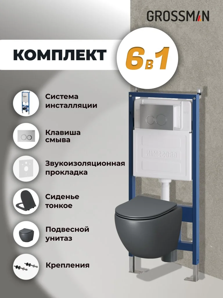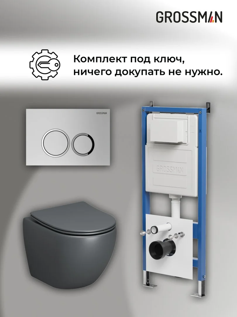 Комплект инсталляции GROSSMAN 900.K31.01.000 с клавишей смыва 700.K31.01.110.110 хром матовый и унитазом GROSSMAN GR-4455GMS арт.97.4455GMS.01.110