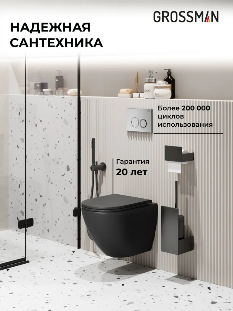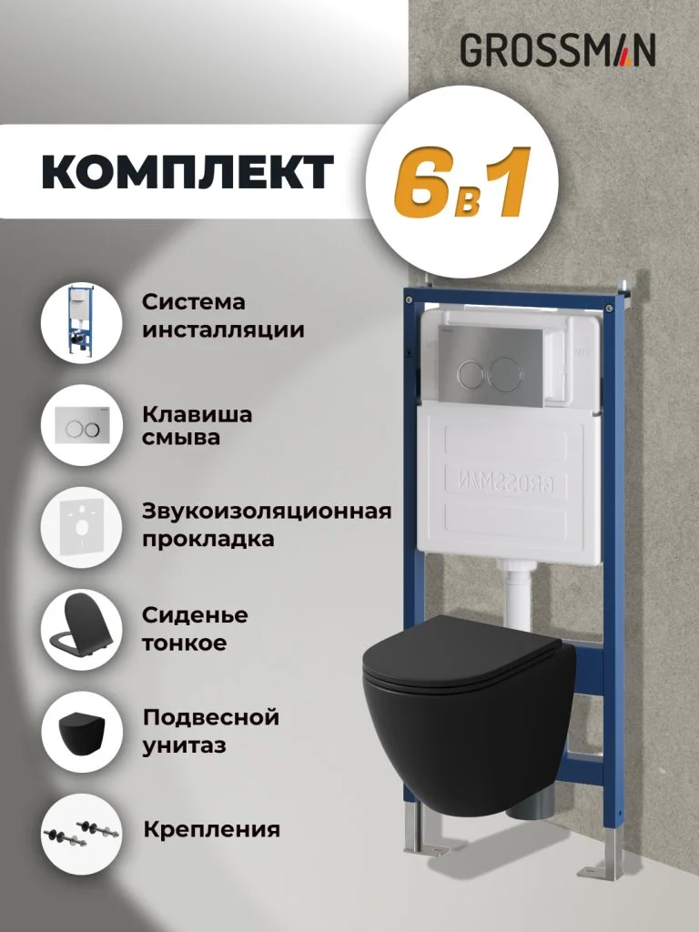 Комплект инсталляции GROSSMAN 900.K31.01.000 с клавишей смыва 700.K31.01.110.110 хром матовый и унитазом GROSSMAN GR-4455BMS арт.97.4455BMS.01.110