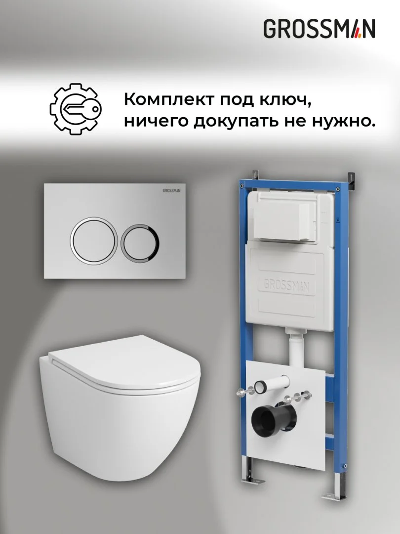 Комплект инсталляции GROSSMAN 900.K31.01.000 с клавишей смыва 700.K31.01.110.110 хром матовый и унитазом GROSSMAN GR-4455SQ арт.97.4455SQ.01.110