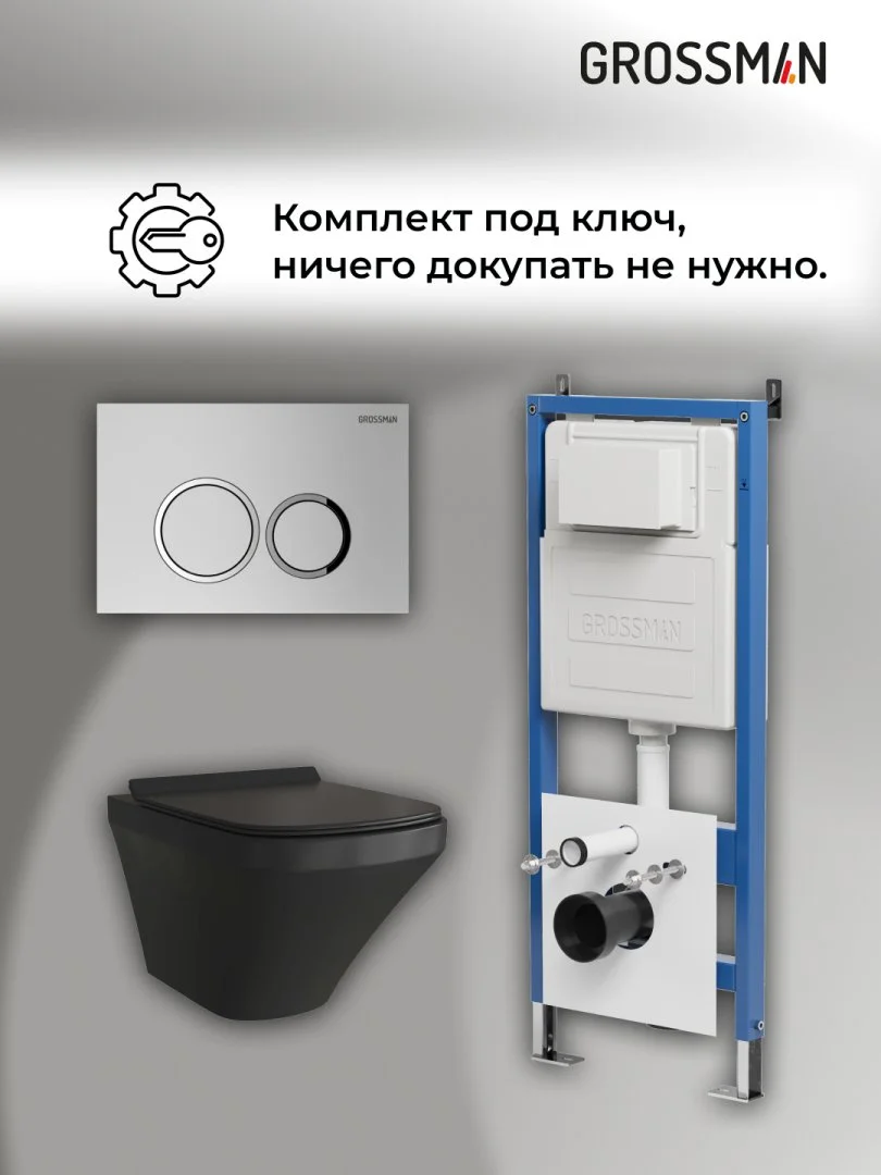Комплект инсталляции GROSSMAN 900.K31.01.000 с клавишей смыва 700.K31.01.110.110 хром матовый и унитазом GROSSMAN GR-4440BMS арт.97.4440BMS.01.110