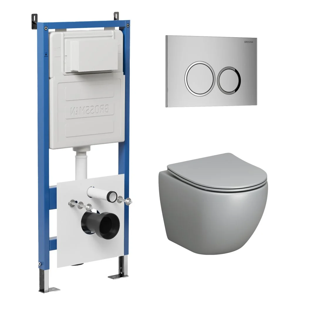 Комплект инсталляции GROSSMAN 900.K31.01.000 с клавишей смыва 700.K31.01.110.110 хром матовый и унитазом GROSSMAN GR-4455GLMS арт.97.4455GLMS.01.110