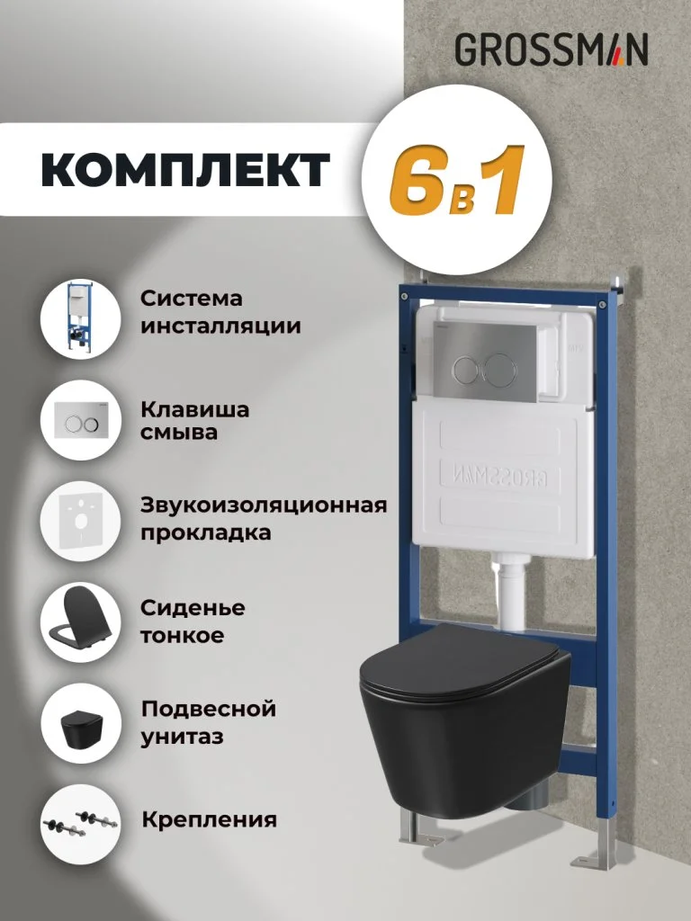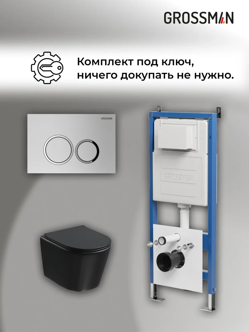 Комплект инсталляции GROSSMAN 900.K31.01.000 с клавишей смыва 700.K31.01.110.110 хром матовый и унитазом GROSSMAN GR-4477BMSQ арт.97.4477BMSQ.01.110
