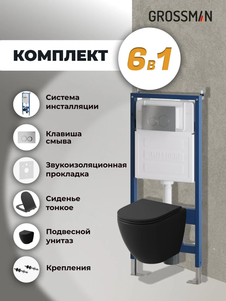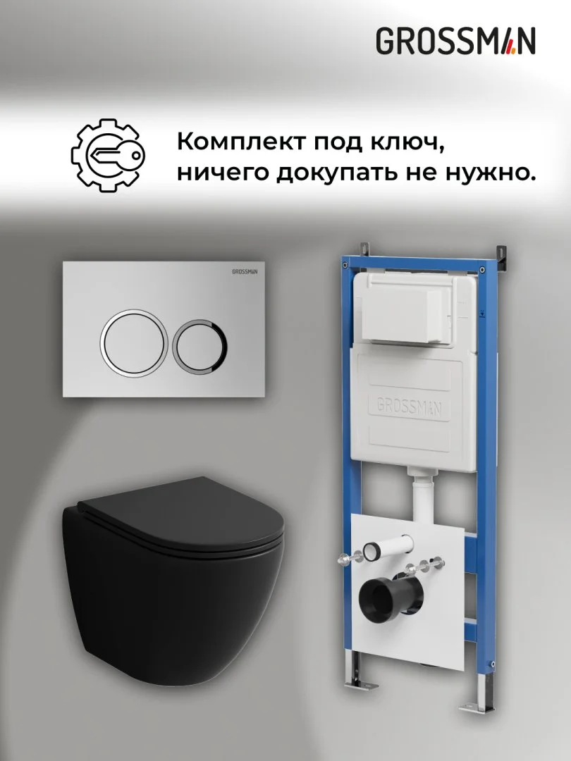 Комплект инсталляции GROSSMAN 900.K31.01.000 с клавишей смыва 700.K31.01.110.110 хром матовый и унитазом GROSSMAN GR-4455BMSQ арт.97.4455BMSQ.01.110