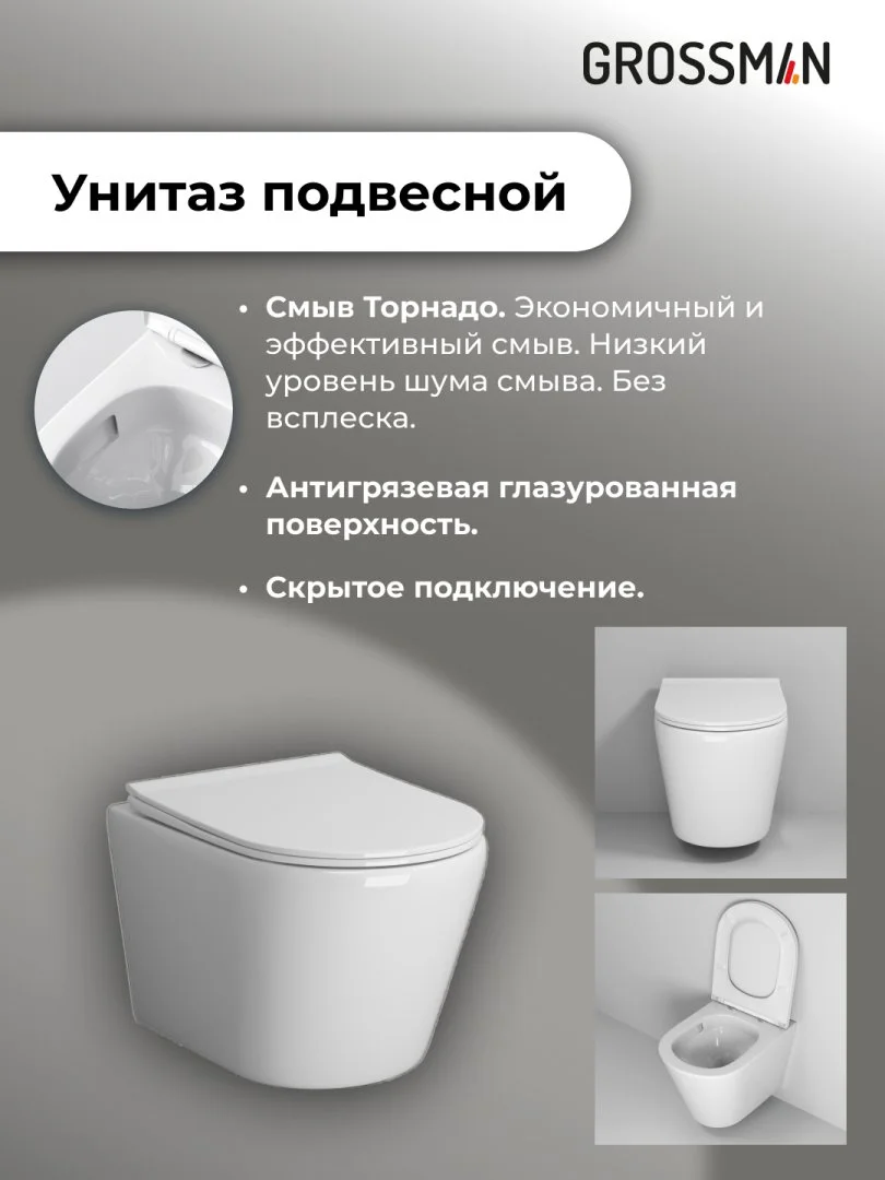 Комплект инсталляции GROSSMAN 900.K31.01.000 с клавишей смыва 700.K31.01.110.110 хром матовый и унитазом GROSSMAN GR-4478SQ арт.97.4478SQ.01.110