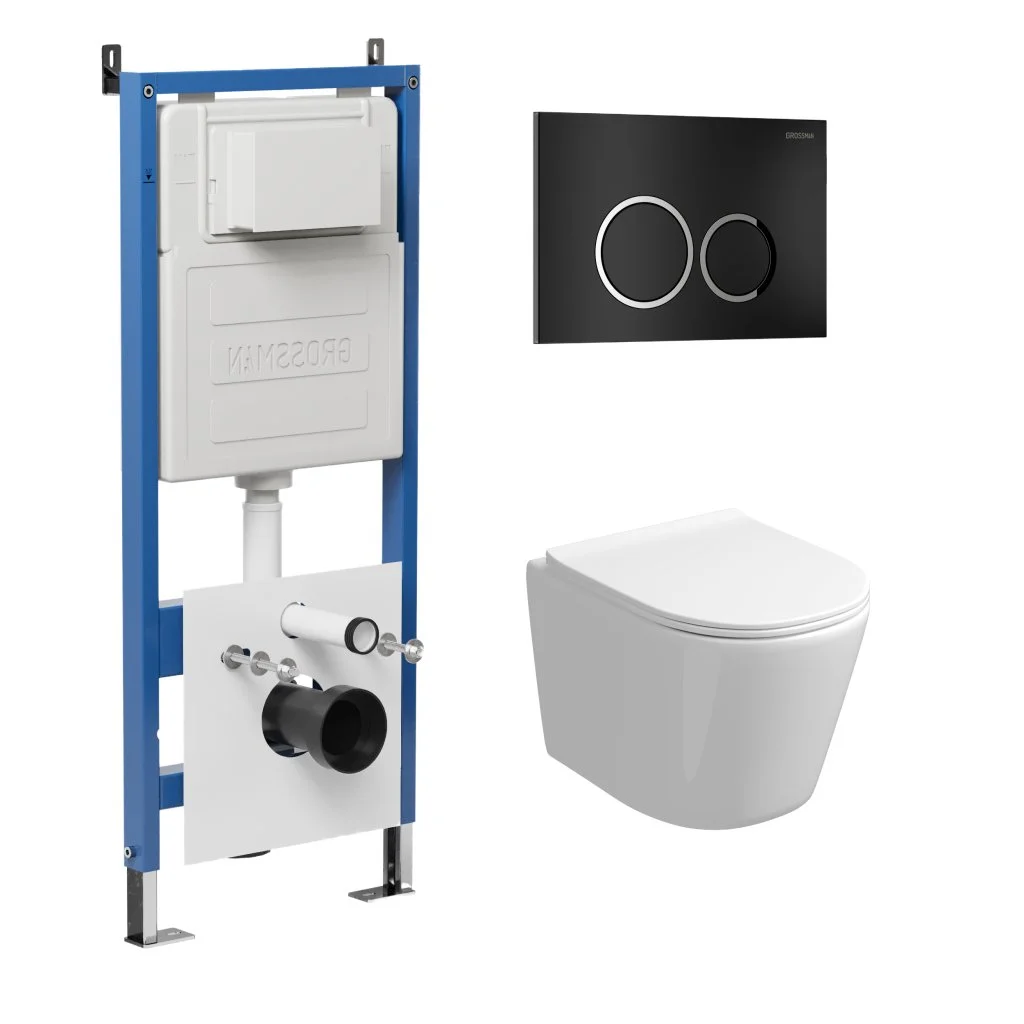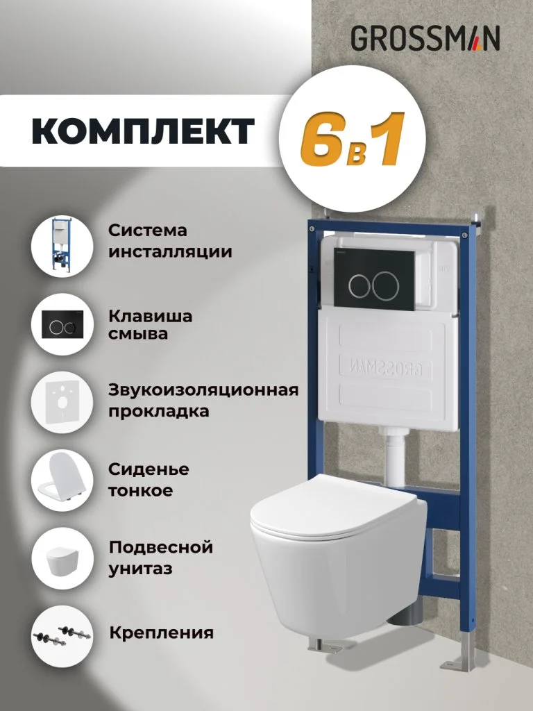 Комплект инсталляции GROSSMAN 900.K31.01.000 с клавишей смыва 700.K31.01.210.210 черный матовый и унитазом GROSSMAN GR-4477SQ арт.97.4477SQ.01.210
