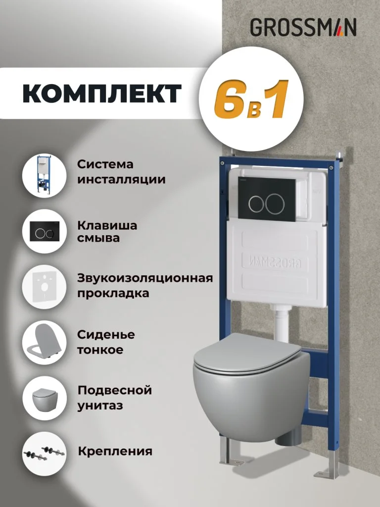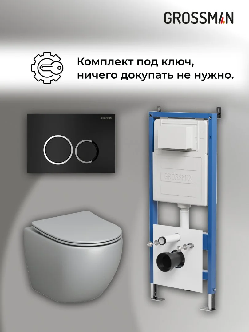 Комплект инсталляции GROSSMAN 900.K31.01.000 с клавишей смыва 700.K31.01.210.210 черный матовый и унитазом GROSSMAN GR-4455GLMS арт.97.4455GLMS.01.210