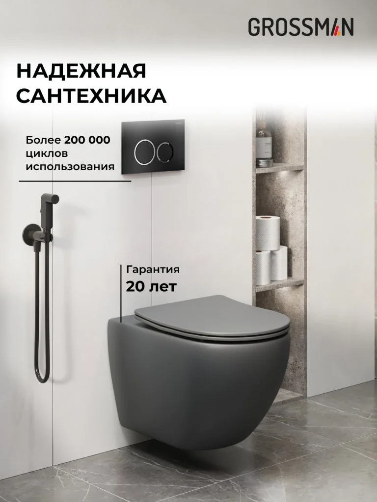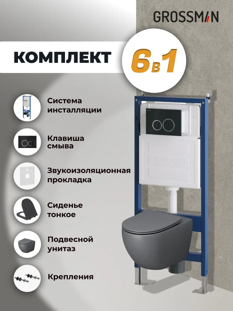 Комплект инсталляции GROSSMAN 900.K31.01.000 с клавишей смыва 700.K31.01.210.210 черный матовый и унитазом GROSSMAN GR-4411GMS арт.97.4411GMS.01.210