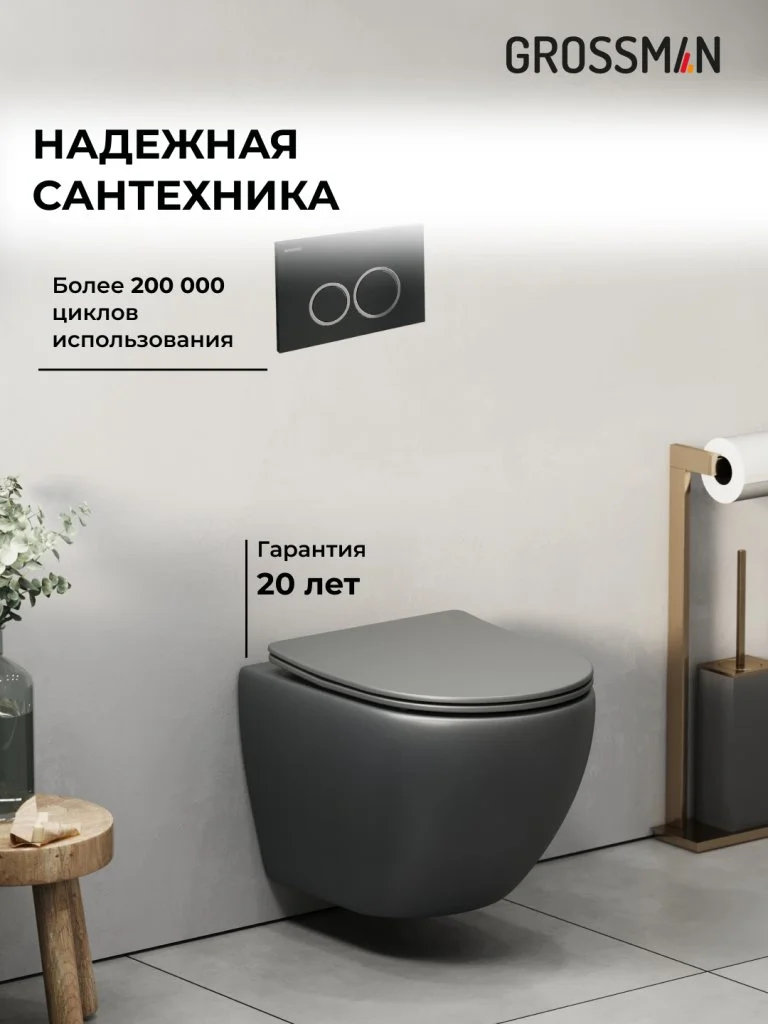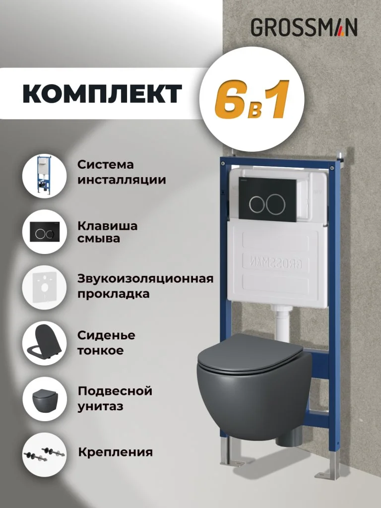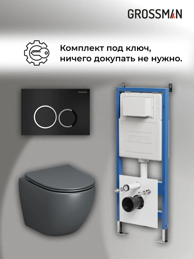 Комплект инсталляции GROSSMAN 900.K31.01.000 с клавишей смыва 700.K31.01.210.210 черный матовый и унитазом GROSSMAN GR-4455GMS арт.97.4455GMS.01.210