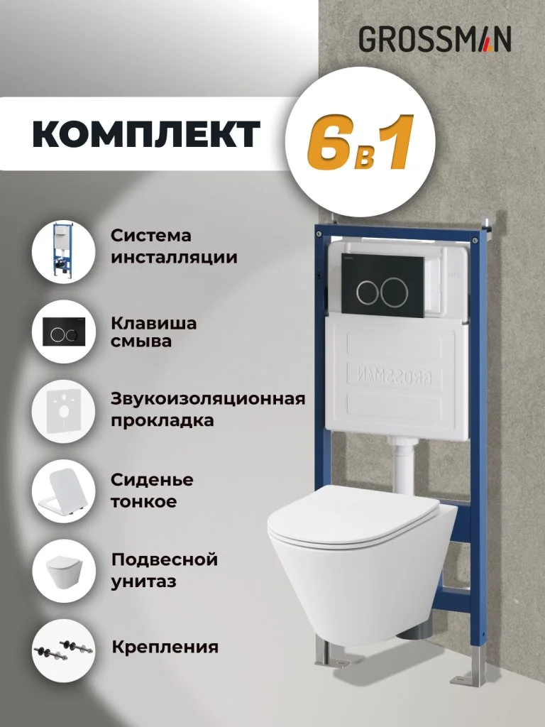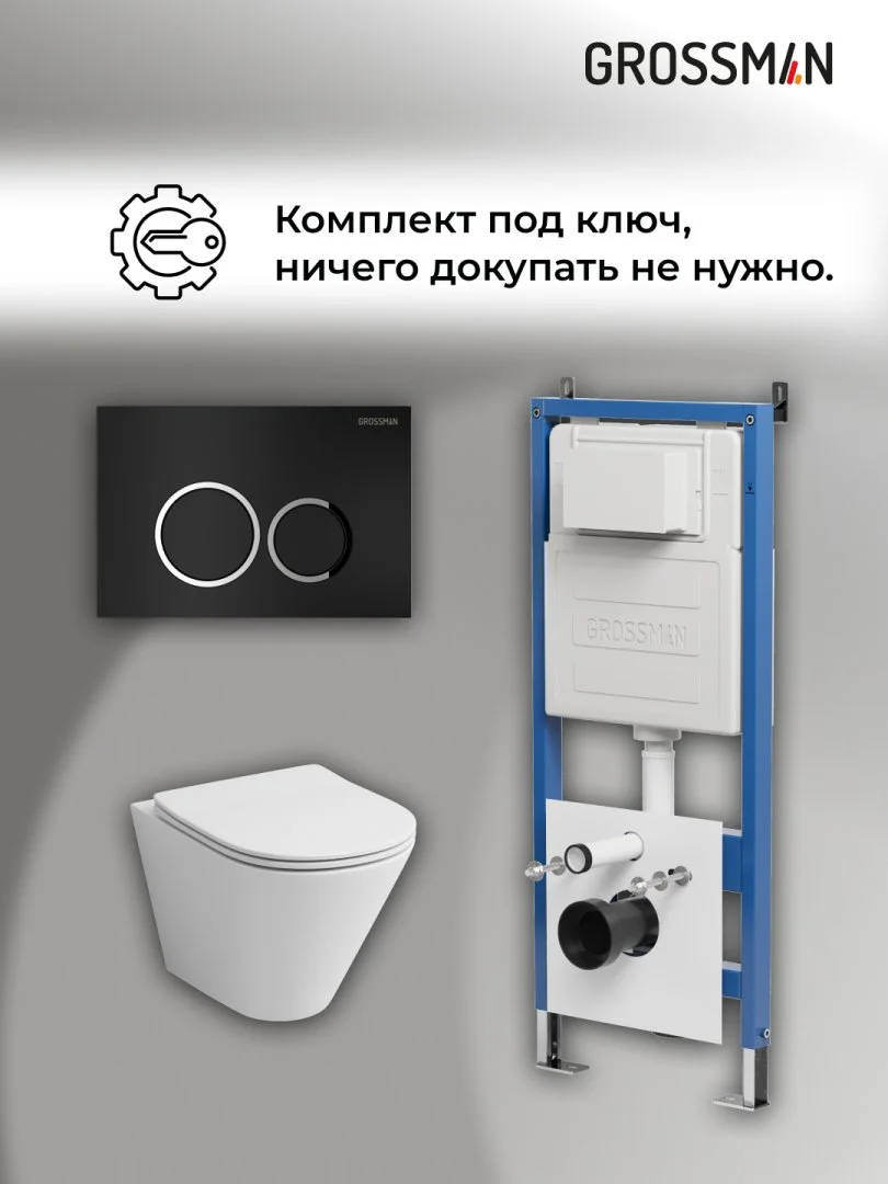 Комплект инсталляции GROSSMAN 900.K31.01.000 с клавишей смыва 700.K31.01.210.210 черный матовый и унитазом GROSSMAN GR-4477S арт.97.4477S.01.210