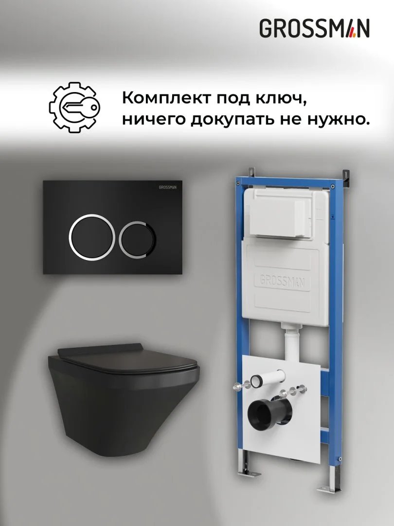 Комплект инсталляции GROSSMAN 900.K31.01.000 с клавишей смыва 700.K31.01.210.210 черный матовый и унитазом GROSSMAN GR-4440BMS арт.97.4440BMS.01.210