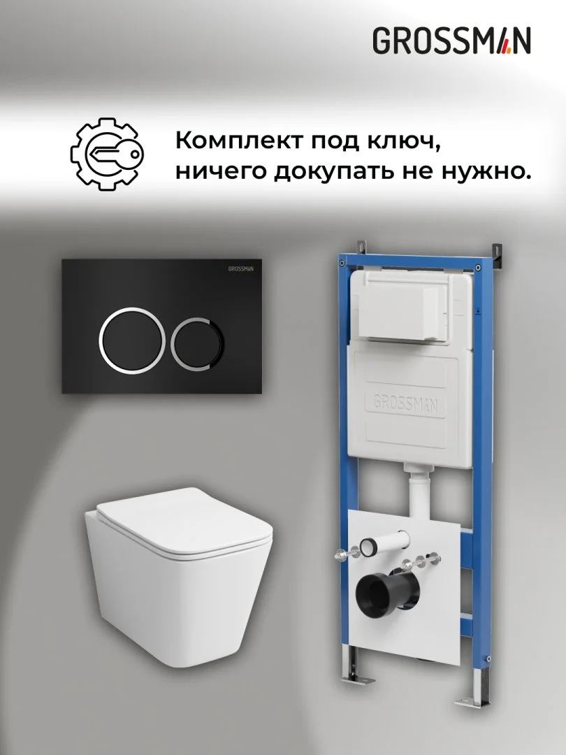 Комплект инсталляции GROSSMAN 900.K31.01.000 с клавишей смыва 700.K31.01.210.210 черный матовый и унитазом GROSSMAN GR-4441S арт.97.4441S.01.210