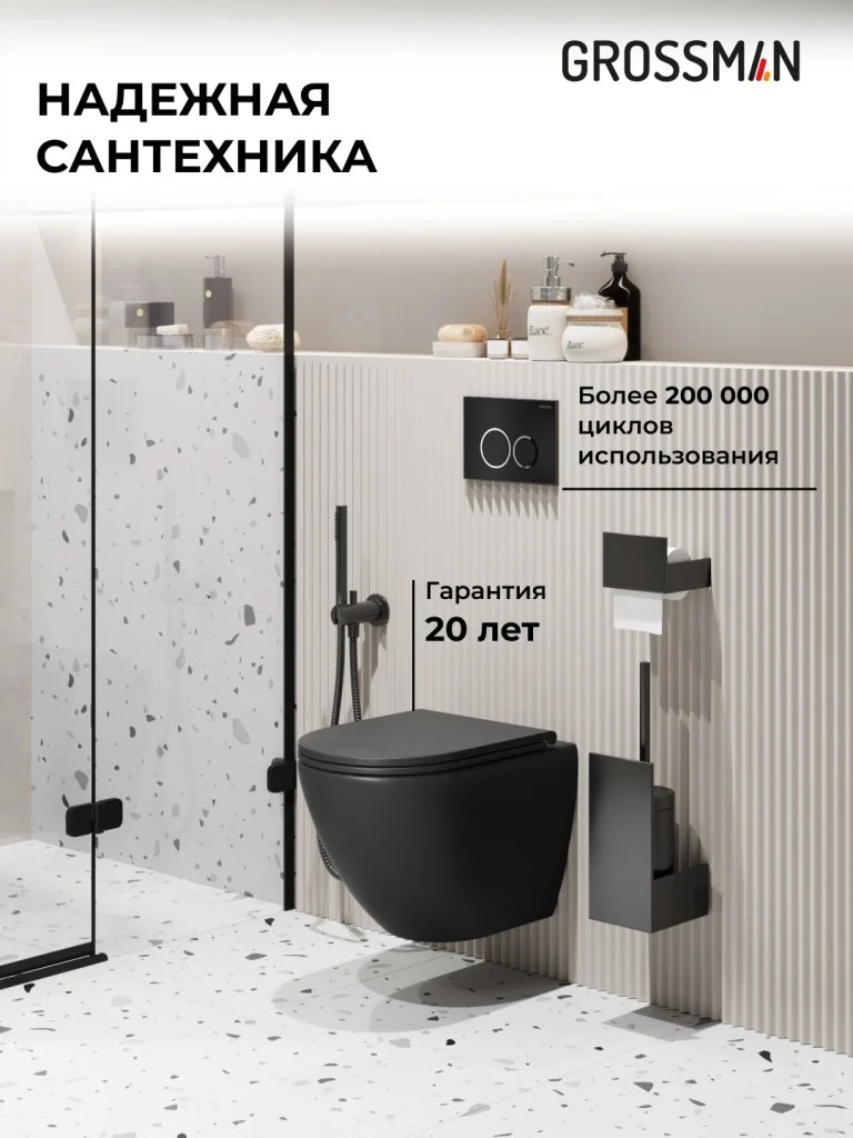 Комплект инсталляции GROSSMAN 900.K31.01.000 с клавишей смыва 700.K31.01.210.210 черный матовый и унитазом GROSSMAN GR-4455BMSQ арт.97.4455BMSQ.01.210