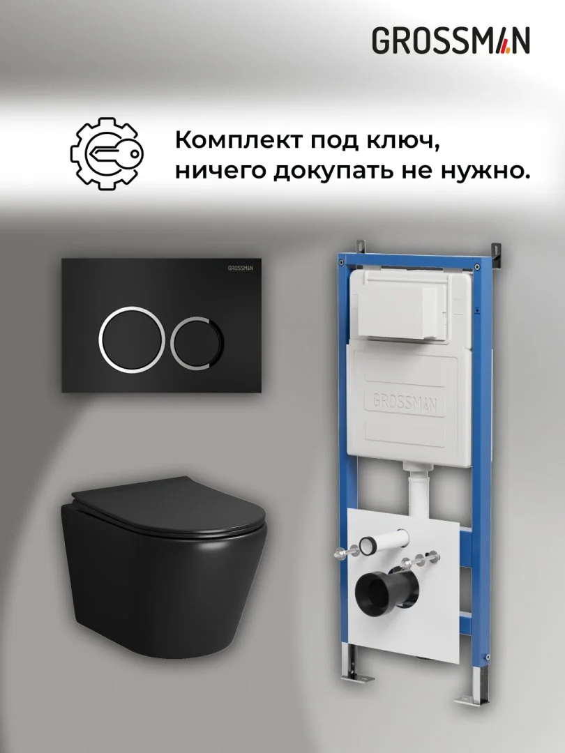 Комплект инсталляции GROSSMAN 900.K31.01.000 с клавишей смыва 700.K31.01.210.210 черный матовый и унитазом GROSSMAN GR-4478BMS арт.97.4478BMS.01.210