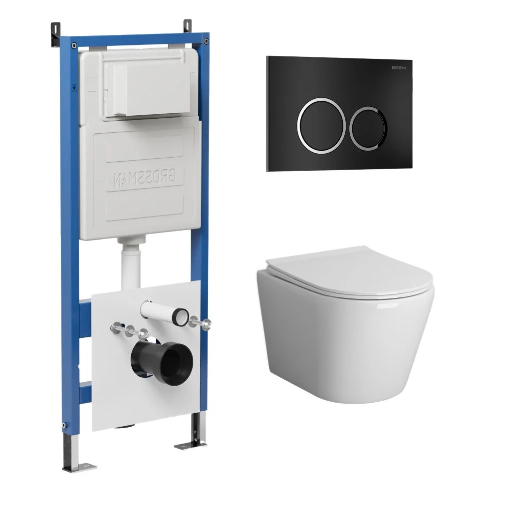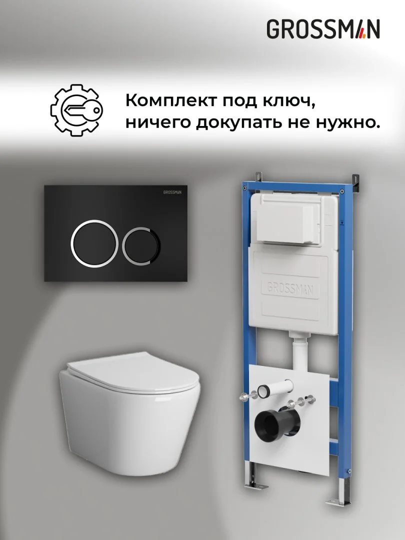 Комплект инсталляции GROSSMAN 900.K31.01.000 с клавишей смыва 700.K31.01.210.210 черный матовый и унитазом GROSSMAN GR-4478SQ арт.97.4478SQ.01.210