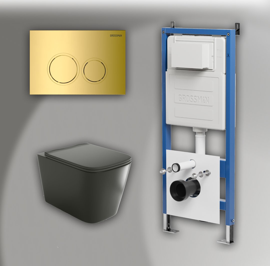 Комплект инсталляции GROSSMAN 900.K31.01.000 с клавишей смыва 700.K31.01.300.300 золото и унитазом GROSSMAN GR-4441BMS арт.97.4441BMS.01.300