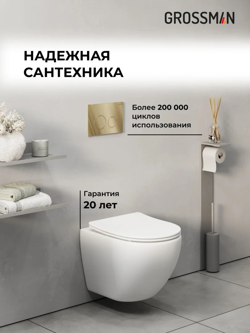 Комплект инсталляции GROSSMAN 900.K31.01.000 с клавишей смыва 700.K31.01.300.300 золото и унитазом GROSSMAN GR-4455SQ арт.97.4455SQ.01.300