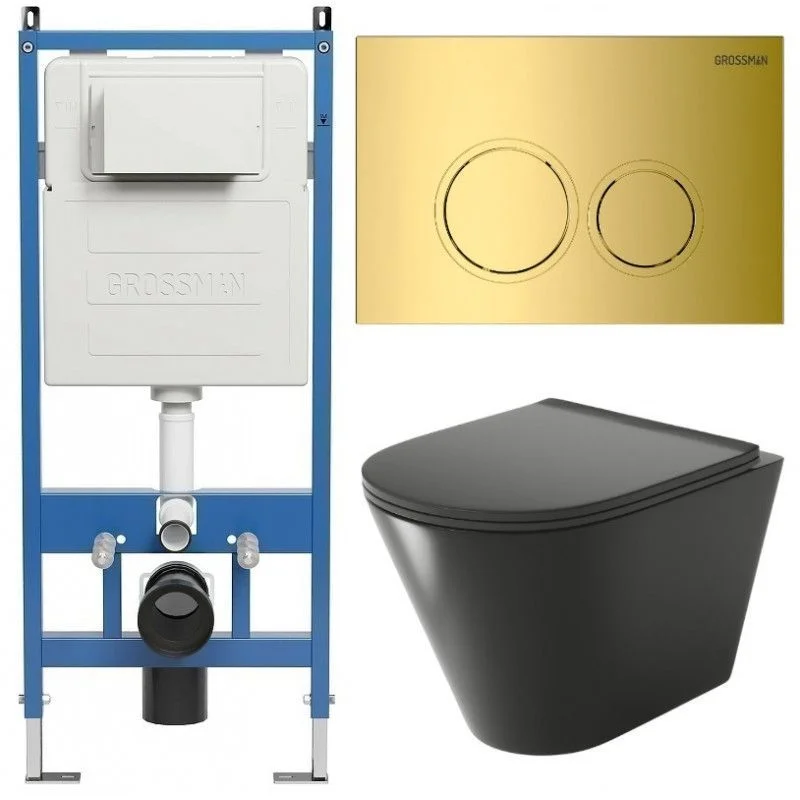 Комплект инсталляции GROSSMAN 900.K31.01.000 с клавишей смыва 700.K31.01.300.300 золото и унитазом GROSSMAN GR-4477BMS арт.97.4477BMS.01.300