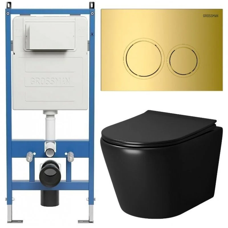 Комплект инсталляции GROSSMAN 900.K31.01.000 с клавишей смыва 700.K31.01.300.300 золото и унитазом GROSSMAN GR-4478BMS арт.97.4478BMS.01.300