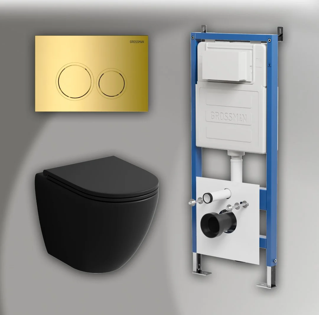 Комплект инсталляции GROSSMAN 900.K31.01.000 с клавишей смыва 700.K31.01.300.300 золото и унитазом GROSSMAN GR-4455BMS арт.97.4455BMS.01.300