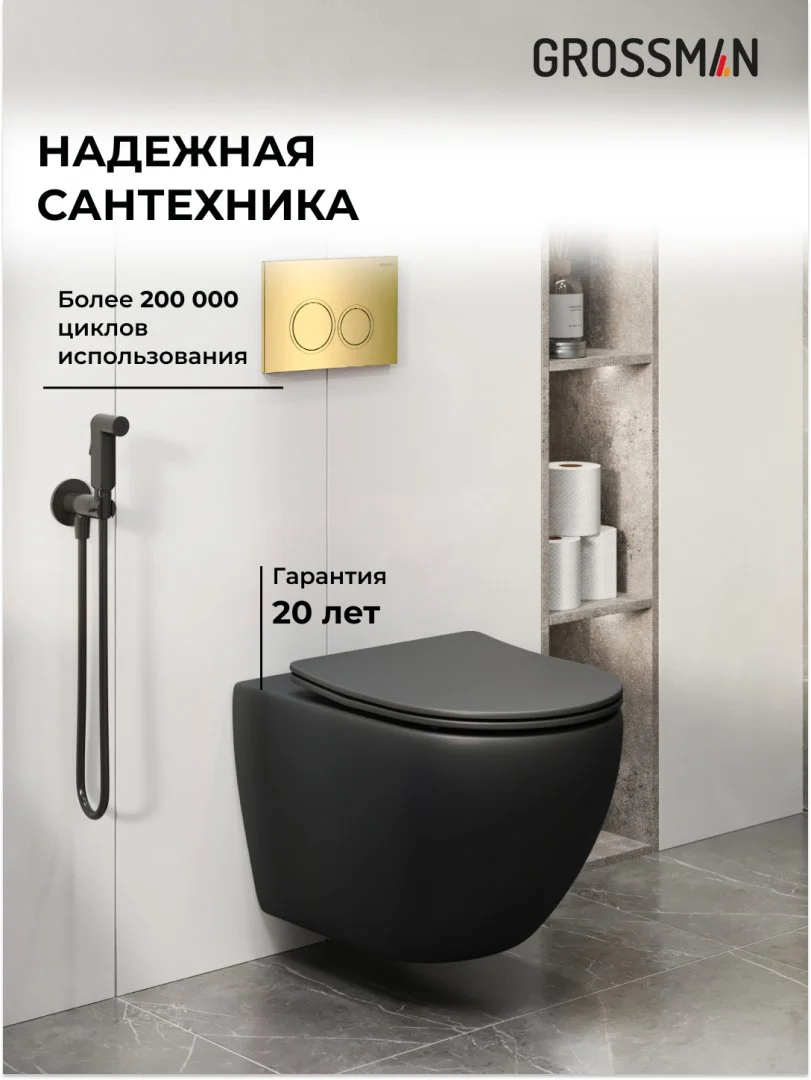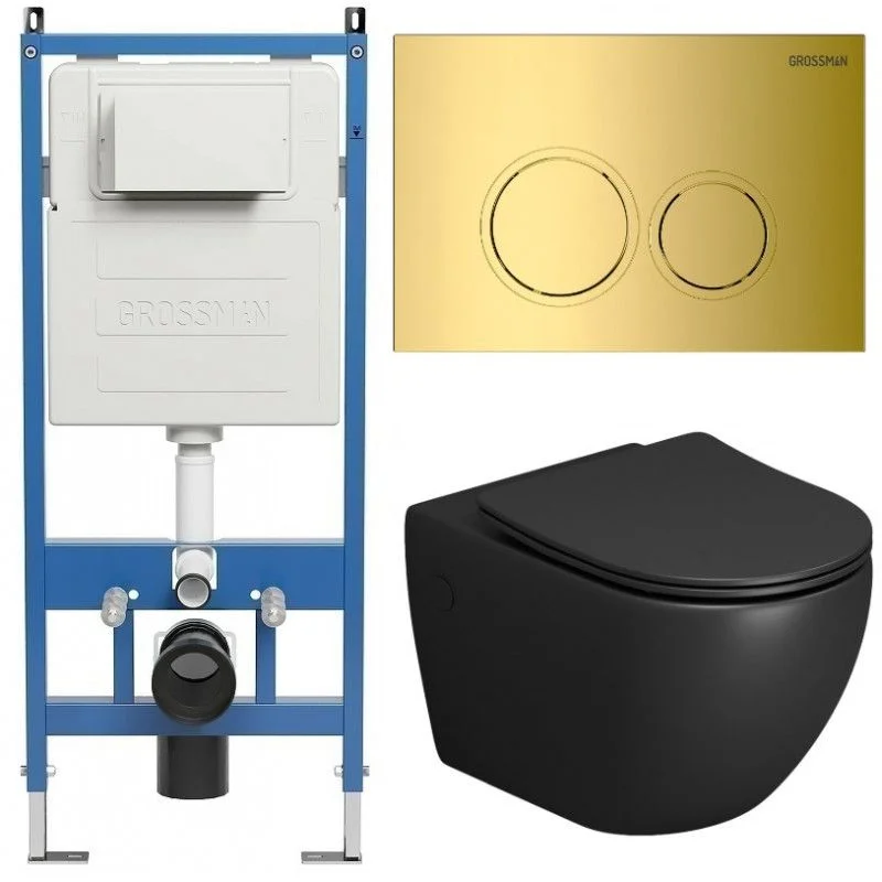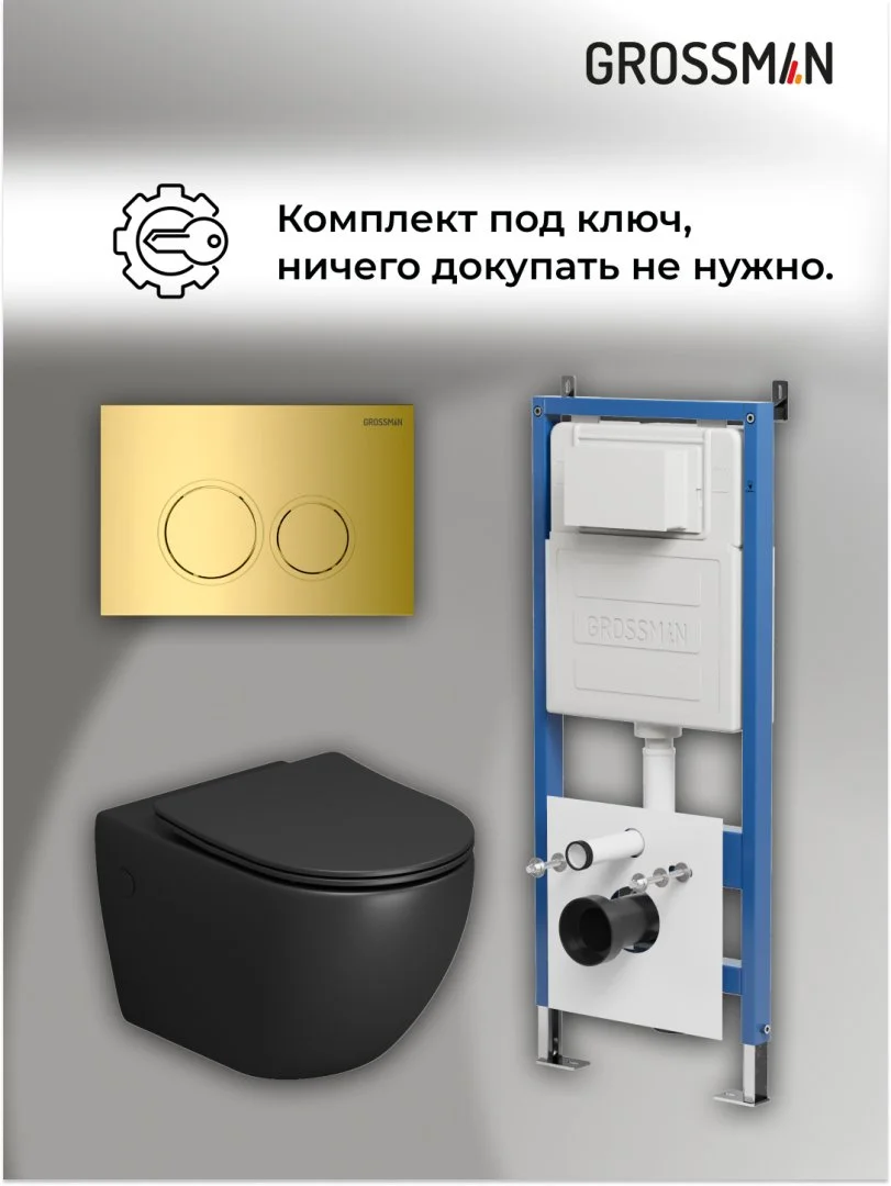 Комплект инсталляции GROSSMAN 900.K31.01.000 с клавишей смыва 700.K31.01.300.300 золото и унитазом GROSSMAN GR-4411BMS арт.97.4411BMS.01.300