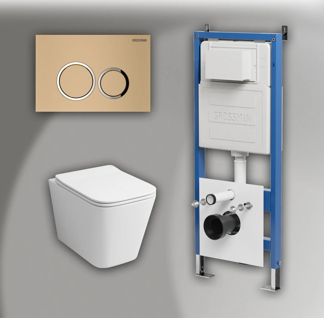 Комплект инсталляции GROSSMAN 900.K31.01.000 с клавишей смыва 700.K31.01.310.310 золото матовое и унитазом GROSSMAN GR-4441S арт.97.4441S.01.310