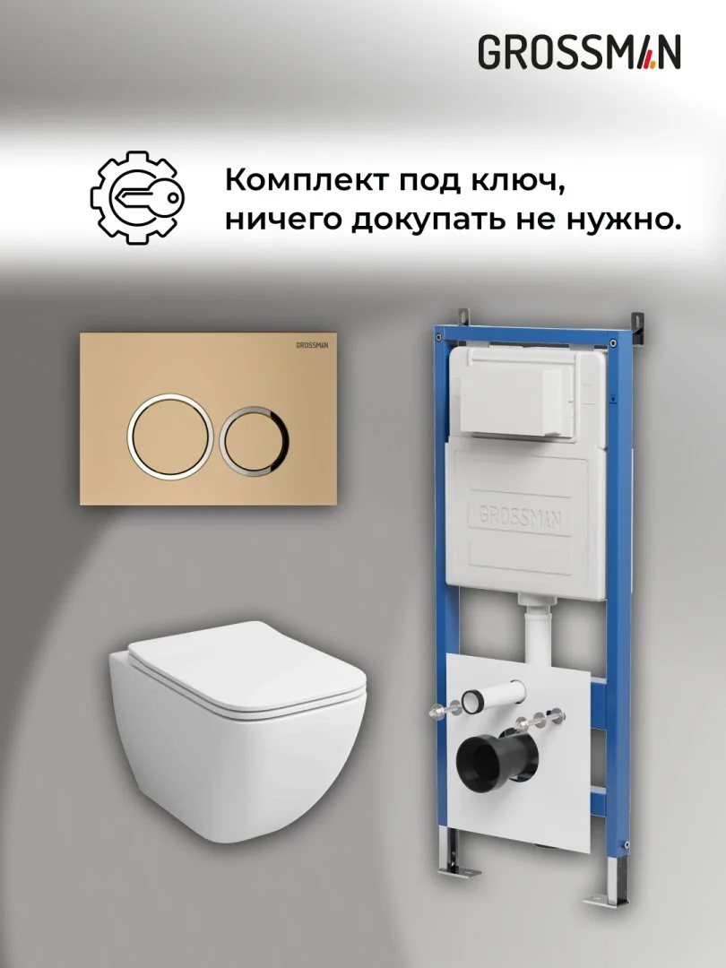 Комплект инсталляции GROSSMAN 900.K31.01.000 с клавишей смыва 700.K31.01.310.310 золото матовое и унитазом GROSSMAN GR-4447S арт.97.4447S.01.310