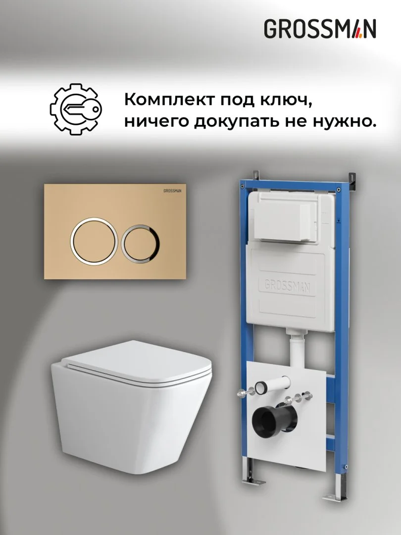Комплект инсталляции GROSSMAN 900.K31.01.000 с клавишей смыва 700.K31.01.310.310 золото матовое и унитазом GROSSMAN GR-4479SQ арт.97.4479SQ.01.310