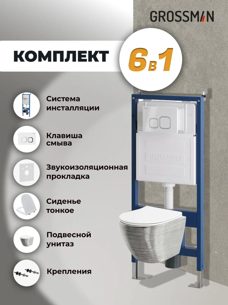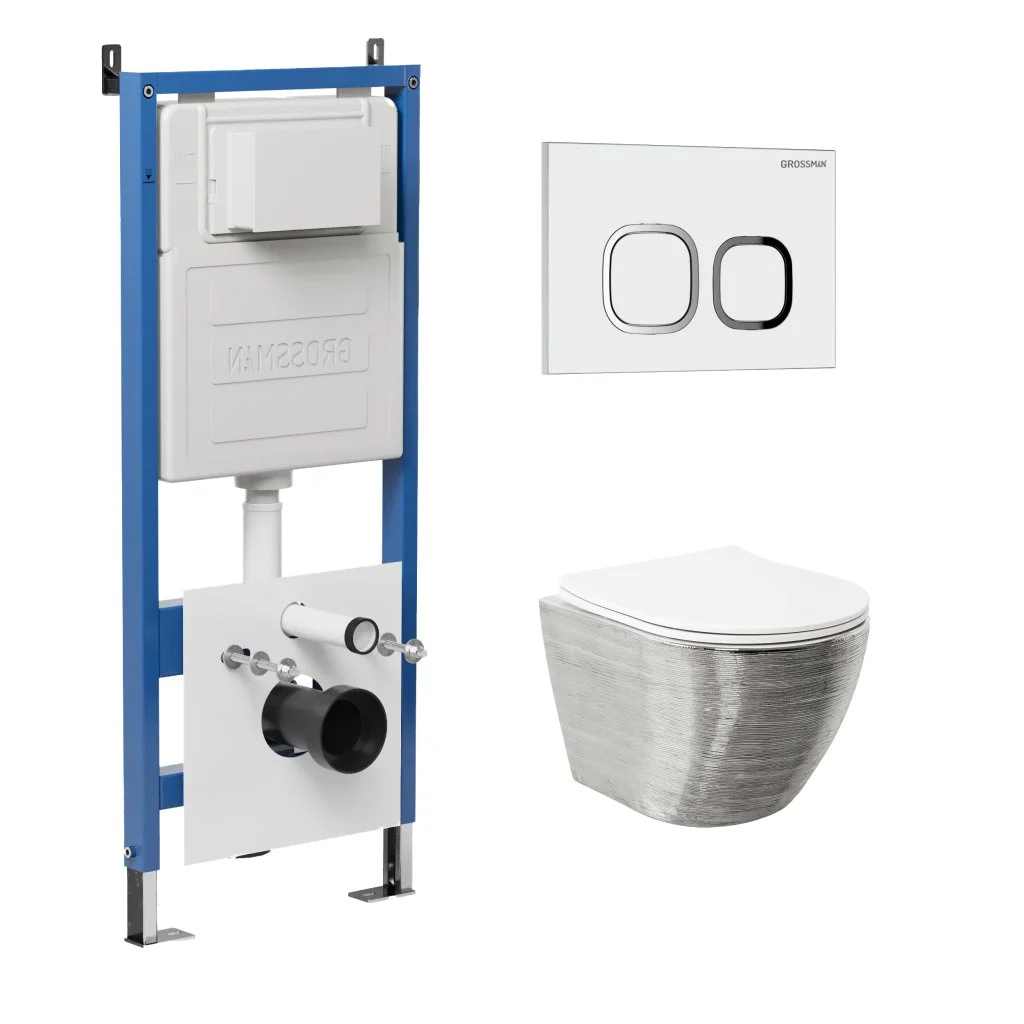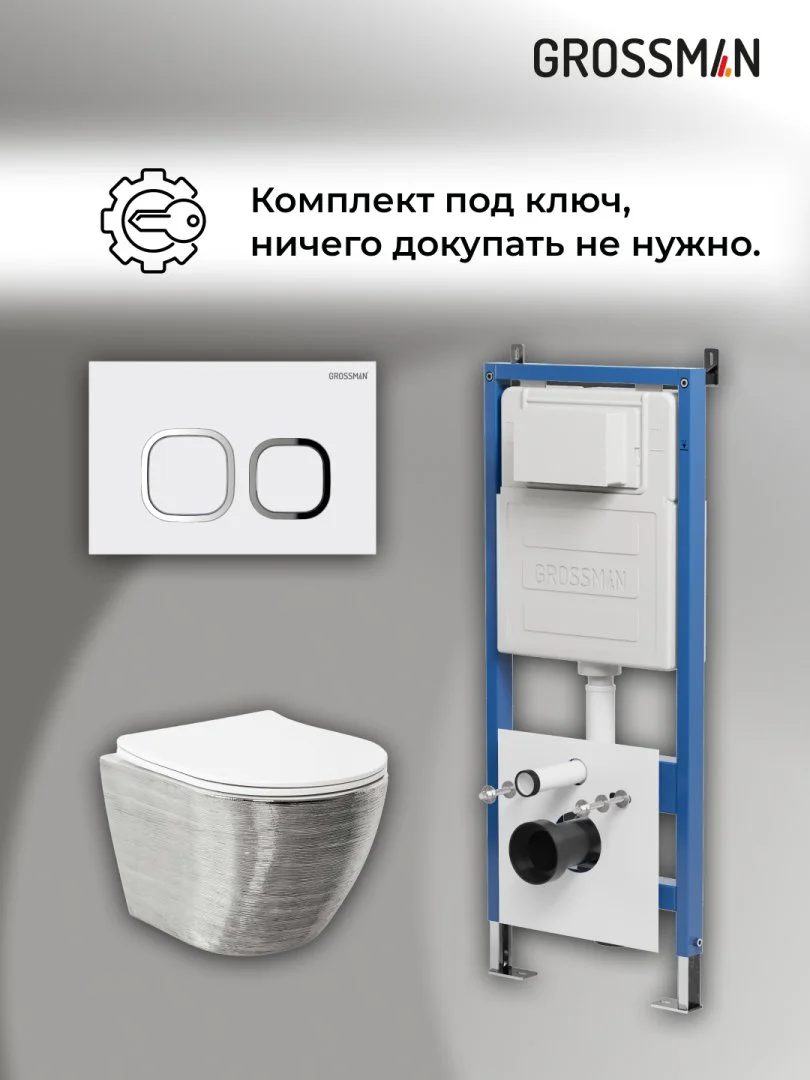 Комплект инсталляции GROSSMAN 900.K31.01.000 с клавишей смыва 700.K31.02.000.000 белый и унитазом GROSSMAN GR-4455SWS арт.97.4455SWS.02.000