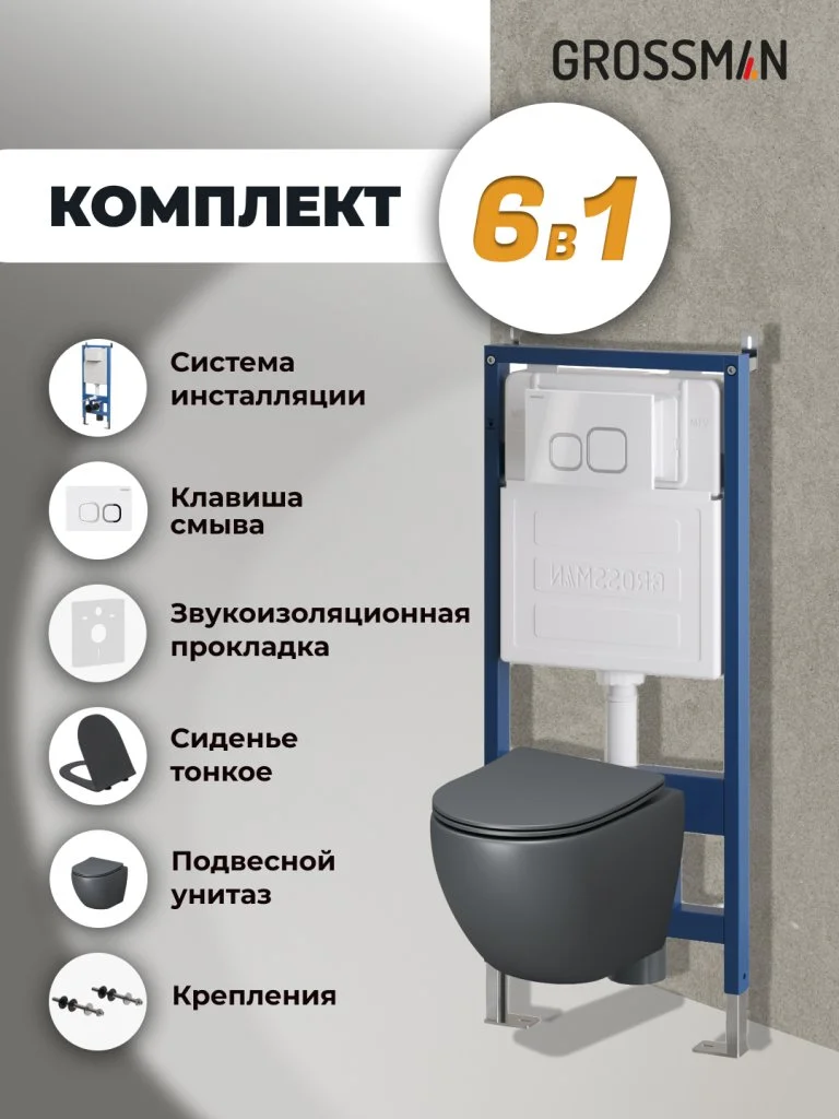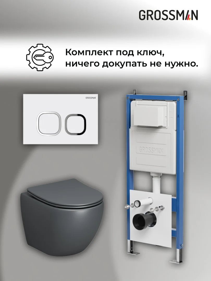 Комплект инсталляции GROSSMAN 900.K31.01.000 с клавишей смыва 700.K31.02.000.000 белый и унитазом GROSSMAN GR-4455GMS арт.97.4455GMS.02.000