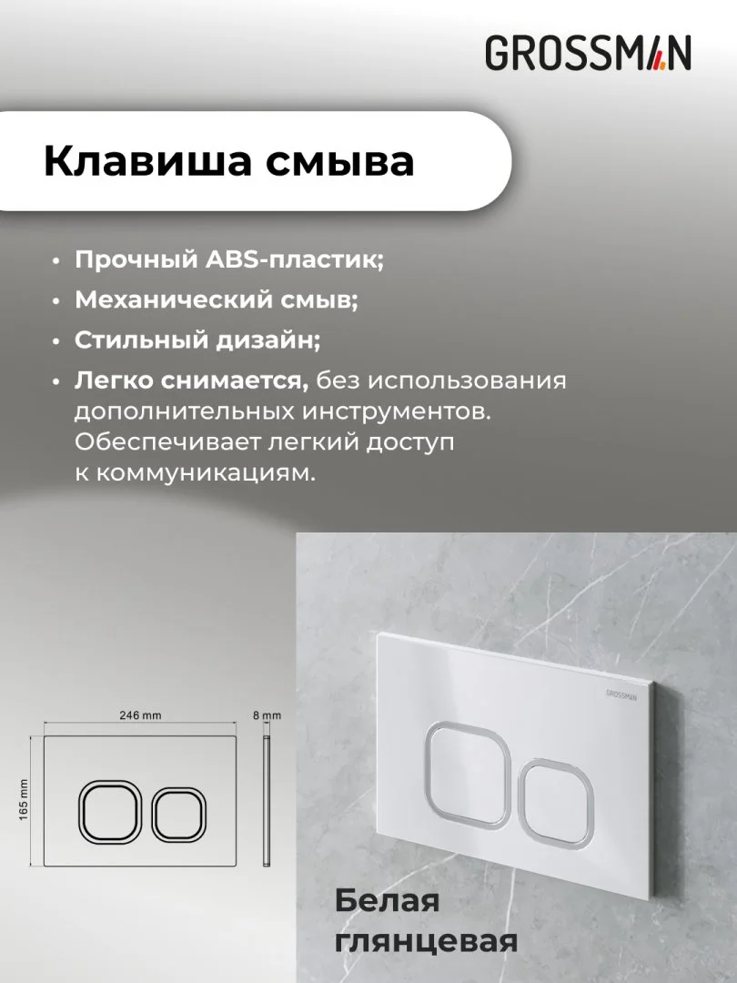 Комплект инсталляции GROSSMAN 900.K31.01.000 с клавишей смыва 700.K31.02.000.000 белый и унитазом GROSSMAN GR-4414S арт.97.4414S.02.000