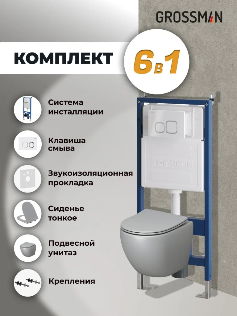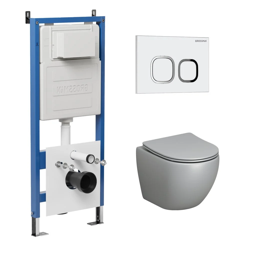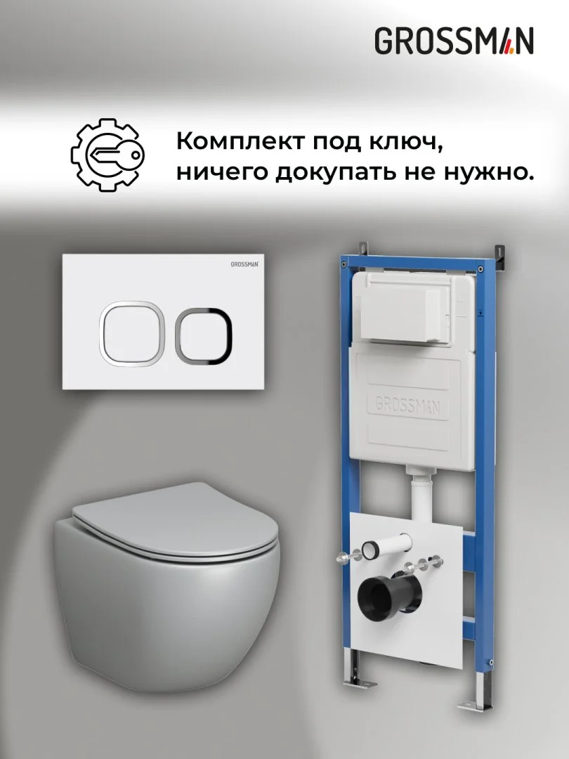 Комплект инсталляции GROSSMAN 900.K31.01.000 с клавишей смыва 700.K31.02.000.000 белый и унитазом GROSSMAN GR-4455GLMS арт.97.4455GLMS.02.000
